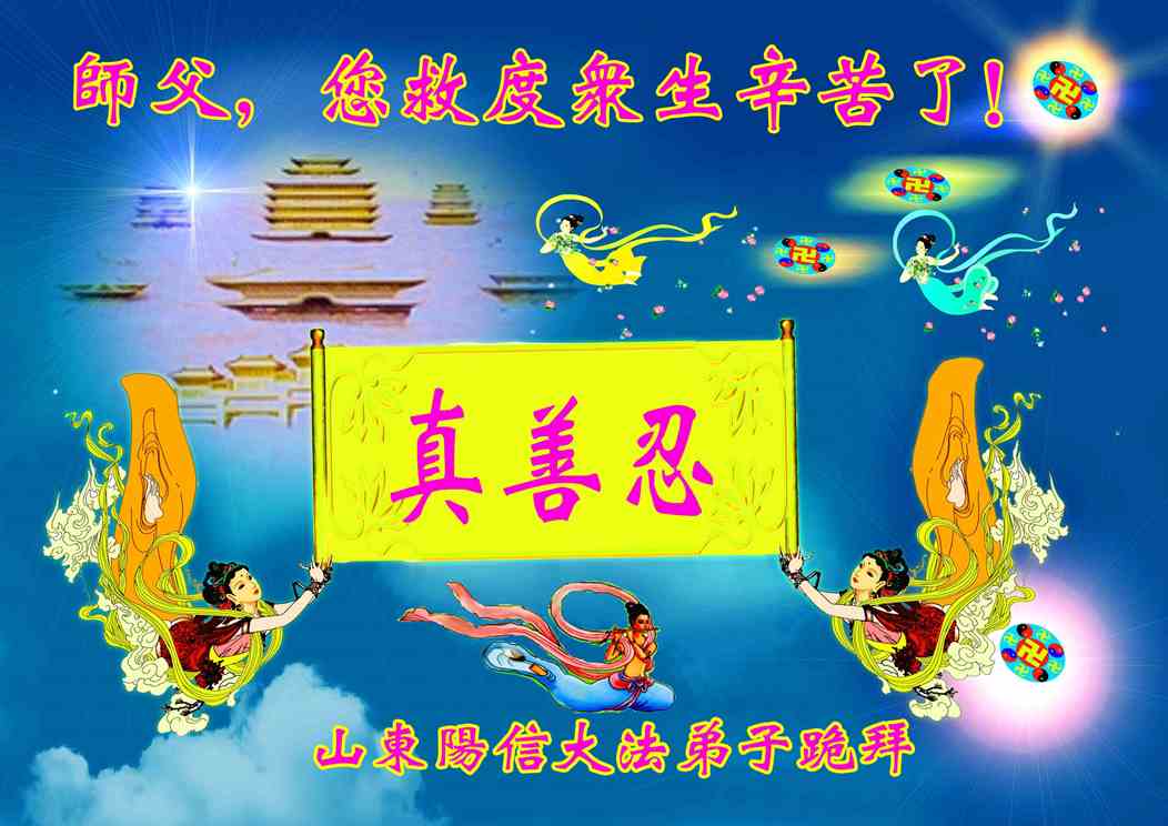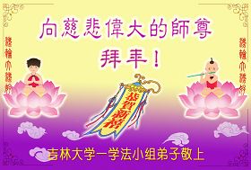 尊敬伟大的李洪志师父您好!十几年来,从大法弟子修炼中我看到了大法的美好,明白大法的真相并坚决支持大法。感谢师父的慈悲救度!