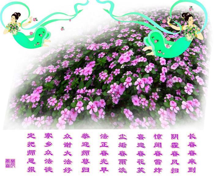 我们是万花丛中的一朵小花,这个小整体有3个老弟子、4个重新走入修炼的昔日同修和一名新学员。我们要紧跟师尊的正法進程,做好“三件事”,多救人,兑现誓约跟师尊回家。感谢师尊慈悲救度,再次跪拜!