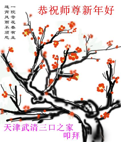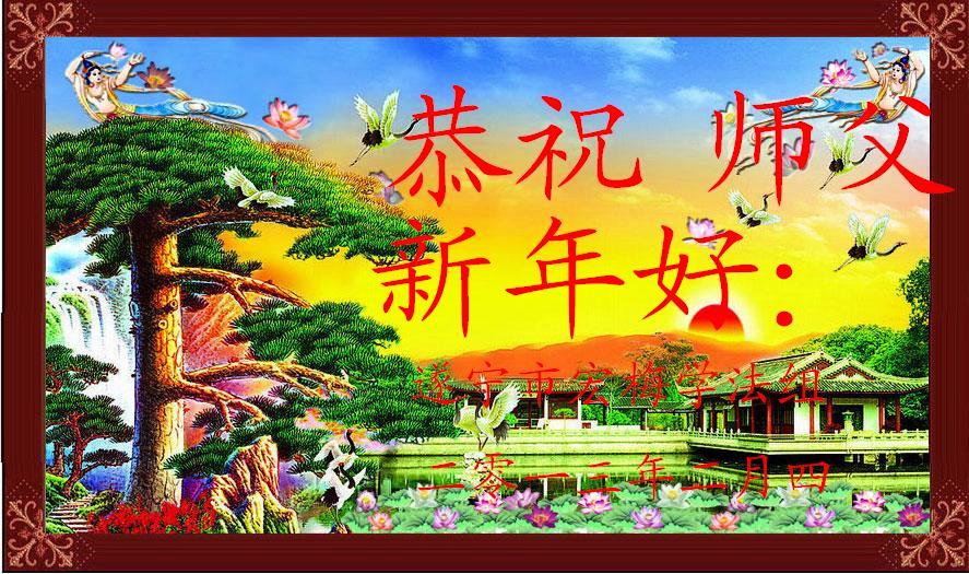 肖飞武、孙浩添、张晗恭祝大法师父新年好!