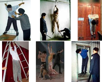 什么吊铐(上大挂)背铐、手脚连铐(所谓“拉上”,人不能直腰)等等,花样翻新,把人吊铐悬空再进行毒打和其它折磨。