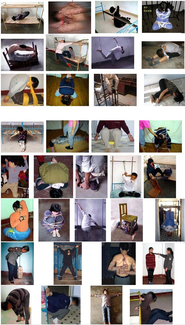 下面展示的图片,仅仅是迫害者对法轮功学员绑铐的种种形式,每位被绑架的法轮功学员,最先经历的就是绑铐,把人绑铐起来,再施加各种毒打和凌辱,可见迫害者其凶残恶毒,手段多端、伤害剧烈,灭绝人性,也可以想象法轮功学员承受着怎样的痛苦。