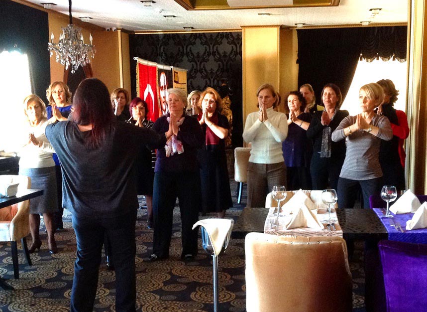 法轮功的“真善忍”原则,以及健体强身的神奇功效,使来自国际狮子会(Lions Club International)土耳其羌乐贝(Camlibel)分会的近二十位成员代表产生了极大的兴趣,她们中的很多人表示要加入到学炼法轮功的行列中来。