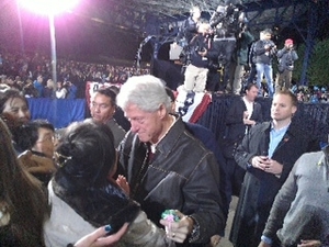 美国前总统克林顿前往华盛顿DC地区维吉尼亚的Bristol,参加民主党的一个活动时听到法轮功真相,克林顿对曾在中国受到迫害的两位华府法轮功学员说:“我感到抱歉,你们受苦了!”法轮功学员Angela先向克林顿介绍了在场的法轮功学员马春梅和于真洁在中国大陆受到中共迫害。克林顿很用心在听到后说:“我感到抱歉!你们受苦了!”(oh, I am sorry, you have to go through it……)克林顿随后分别和马春梅、于真洁拥抱和握手。