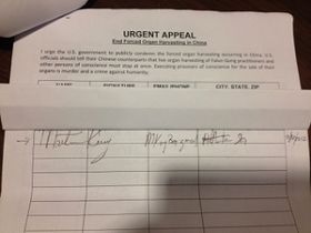 这份征签信中说:“我敦促美国政府谴责中共的活体摘取器官的恶行。美国官员应该公开告知中共,必须马上停止活摘法轮功学员器官和其他良心犯器官。”征签信还说:“以售卖器官为目的处决良心犯人是谋杀,是反人类的罪行。”