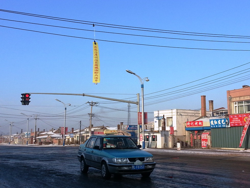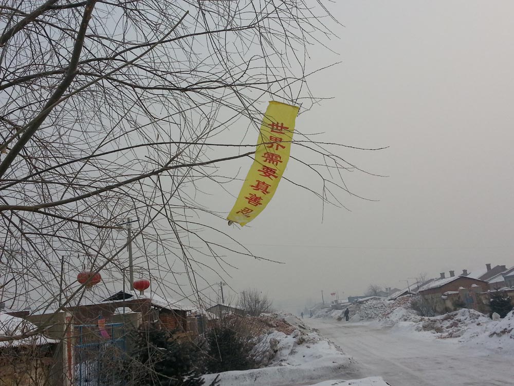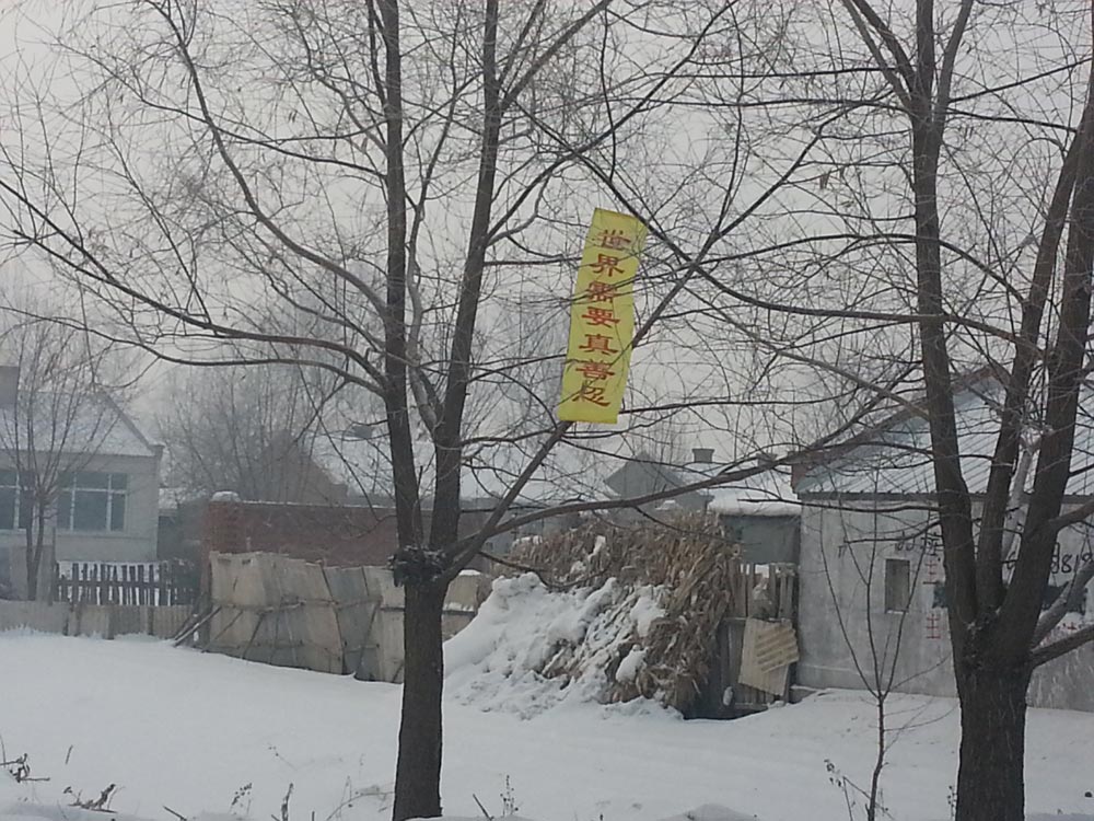 图片报道:黑龙江鸡西市真相条幅迎新年