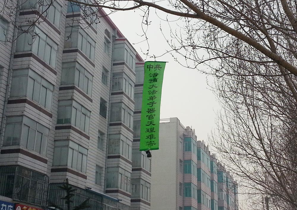 大陆各地庆祝世界法轮大法日的条幅粘贴