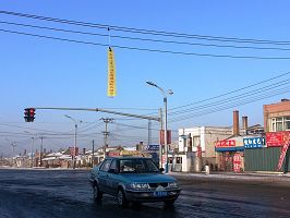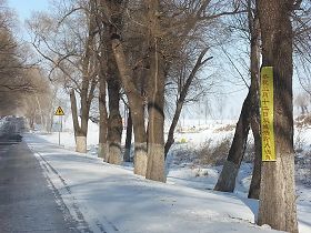 庆祝513 东北某市公路两侧的真相条幅(图)