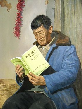 在中国大陆的北方农村,农忙时农民们面朝黄土背朝天的辛勤耕作,汗流浃背;农闲时背井离乡进城打工,起早贪黑,饱受酷暑与饥寒。然而,半生的辛劳换来的为何依旧是贫困的生活?《·九·评*》!看《·九·评*共产党》就能从苦难中惊醒明白。我长期生活在华北农村,油画作品《惊醒》以中国农村现实生活为背景表现了我的一位乡亲在冬季的午后阅读《·九·评*》的情景。