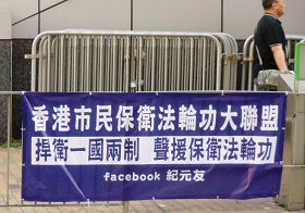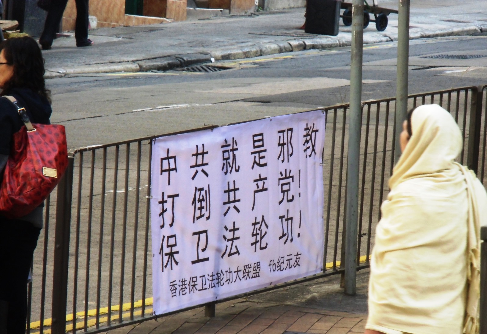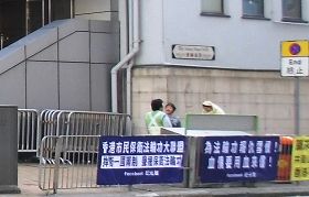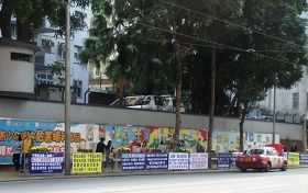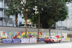 【明慧网二零一三年二月十八日】中国新年期间,在香港中联办的几条街出现了许多香港人支持法轮功的横幅。有的横幅上写着:“香港市民保卫法轮功大联盟,捍卫一国两制,声援保卫法轮功”,有的写着:“中共就是邪教,打倒共产党!保卫法轮功!”有的写着:“‘反党’是个什么罪?(爱国者)”还有横幅上书:“镇压法轮功是中共制造的大冤案,以党代法,以权代法,违法违宪,是党的犯罪行为,是国家的违法行为,是执政党制造的滔天大血案!”“镇压法轮功没有任何法律依据,中国法律从来没有定性法轮功是邪教,这是共产党的犯罪行为,是江泽民制造的滔天大血案!”