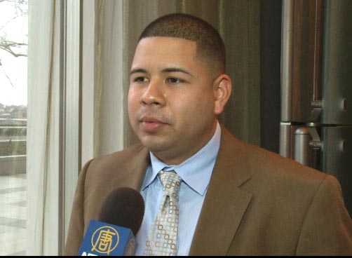 白宫工作人员伊曼纽尔·戈麦斯(Emmanuel Gomez)在接受媒体采访。