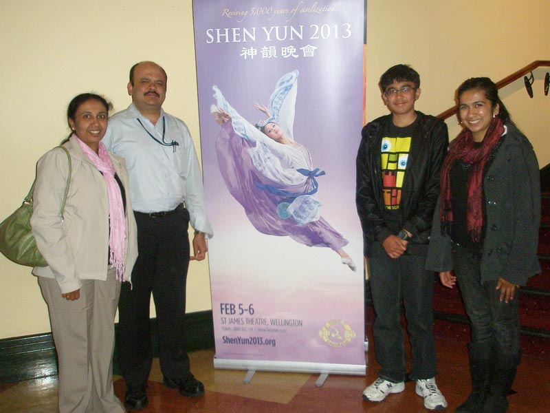 新西兰住房部质量保险经理迪克西特(Sangey Dixit),带着全家四口人和朋友Pattakar全家六口人前来观看神韵的首场演出。迪克西特先生说:“我祖籍是印度。印度和中国有着相似的文化。古代中国人都信佛。但现在这种信仰自由在中国遭到打压。这很令人痛心,也造成社会麻烦”。