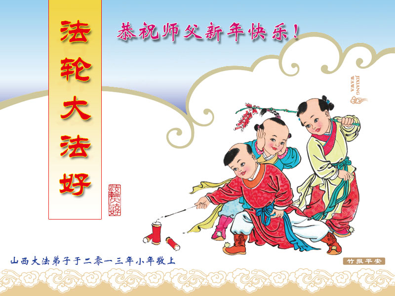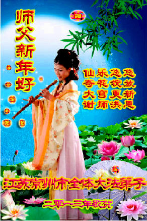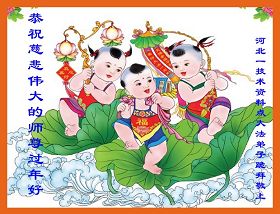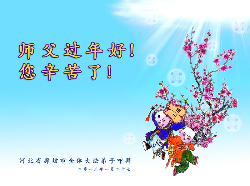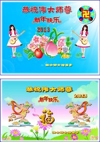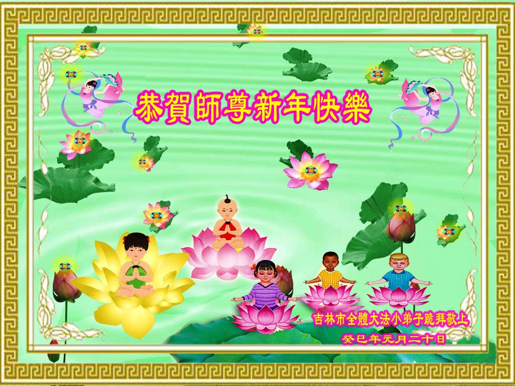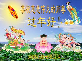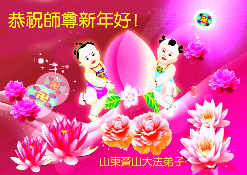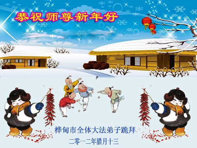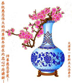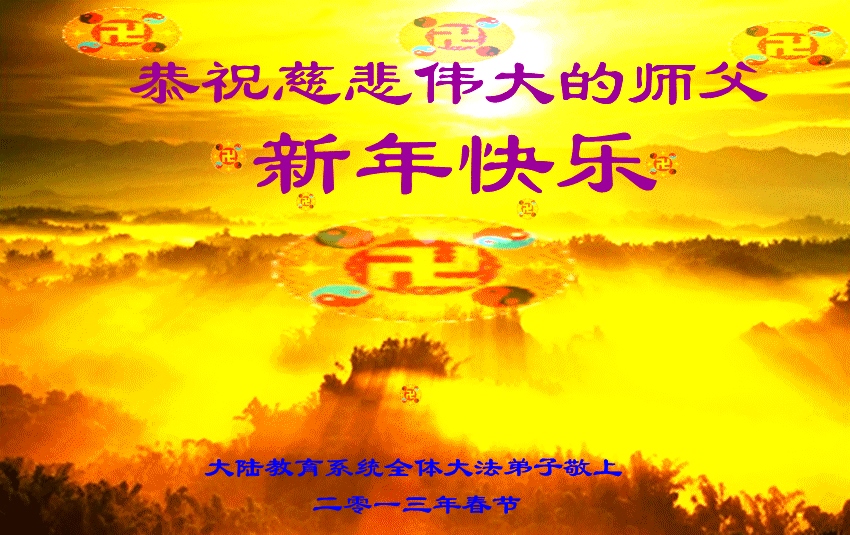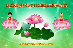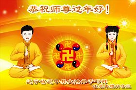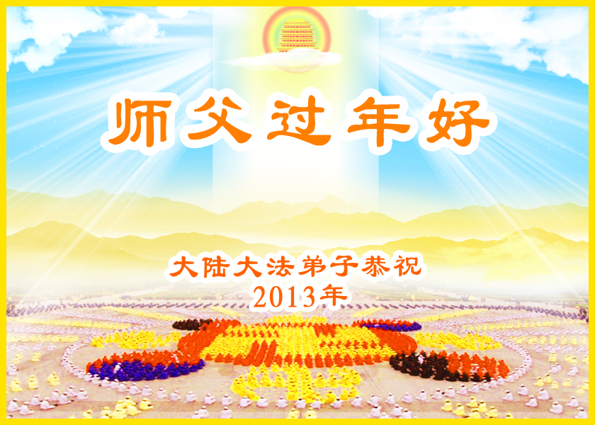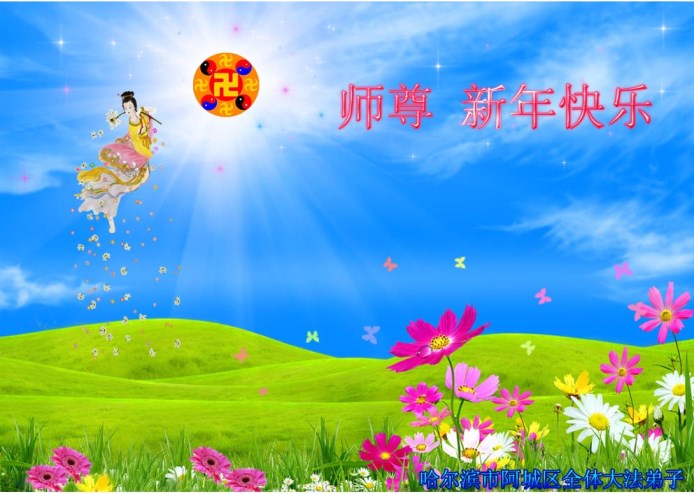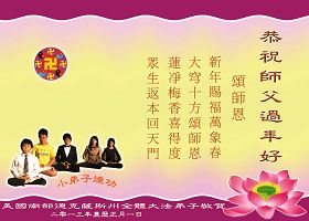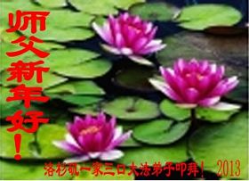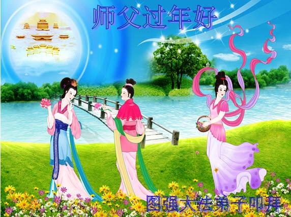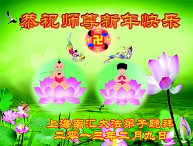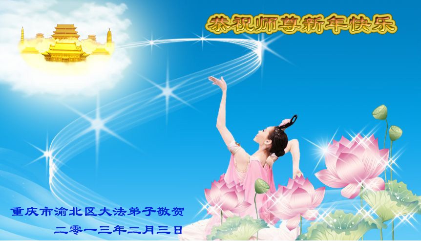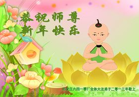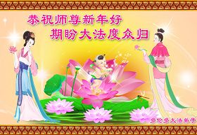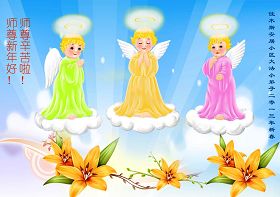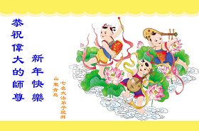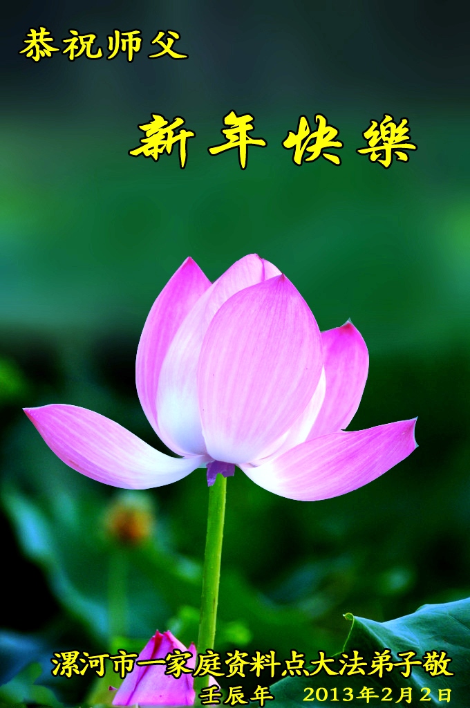 您为拯救众生、为您的弟子们修炼提高护航实在太辛苦了,您为人类带来了无限的光明和希望。看到您的弟子在中共高压迫害的14年里,他们一如既往,年复一年日复一日的做着讲清真相救人的大事,而且不求回报,无私付出,只有您这高德师父才会教出如此善良无私的徒弟。为表敬意,借新年佳节之际发个贺卡,祝您新年愉快,合家欢乐。
