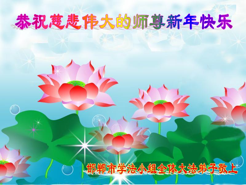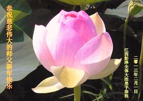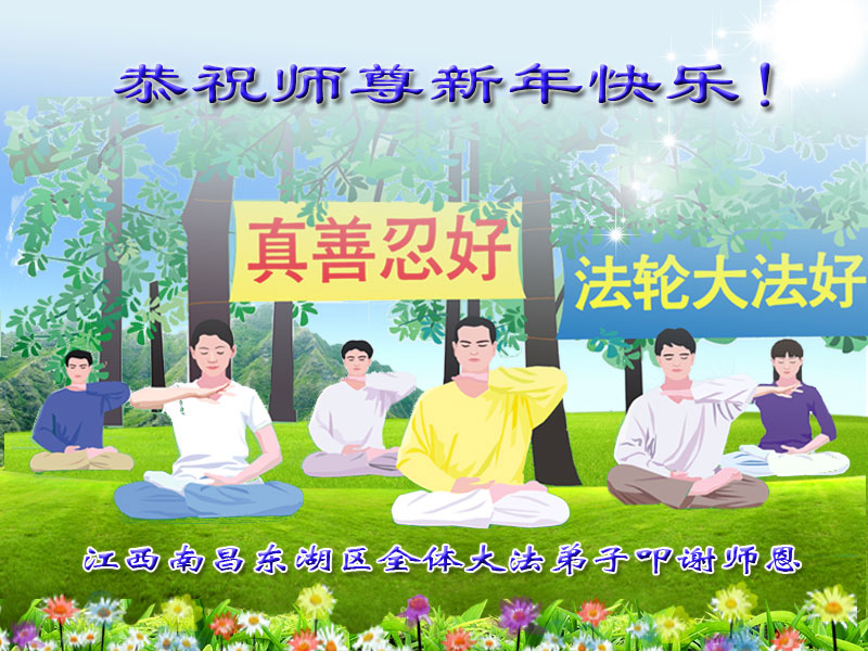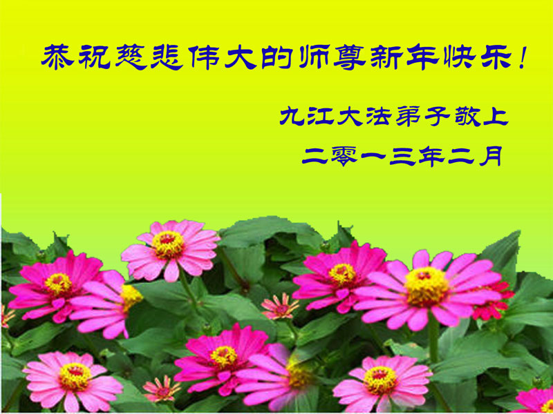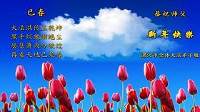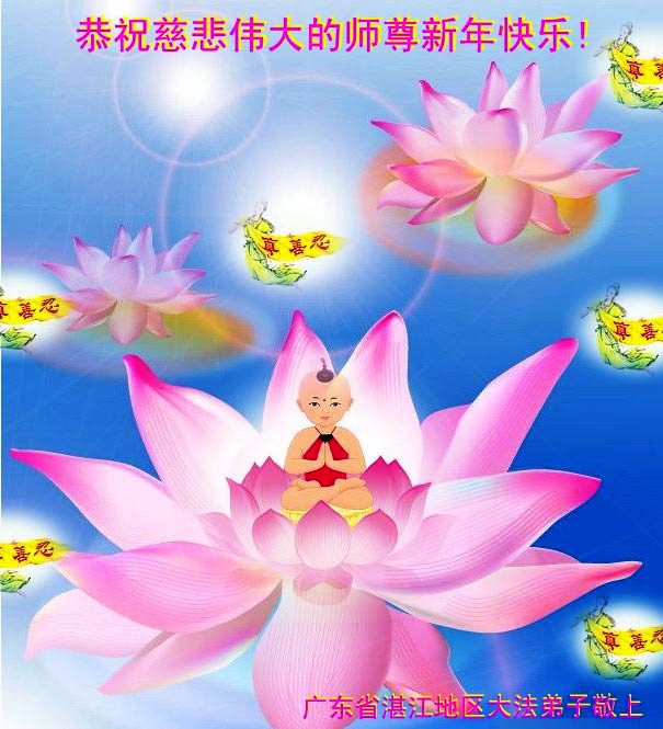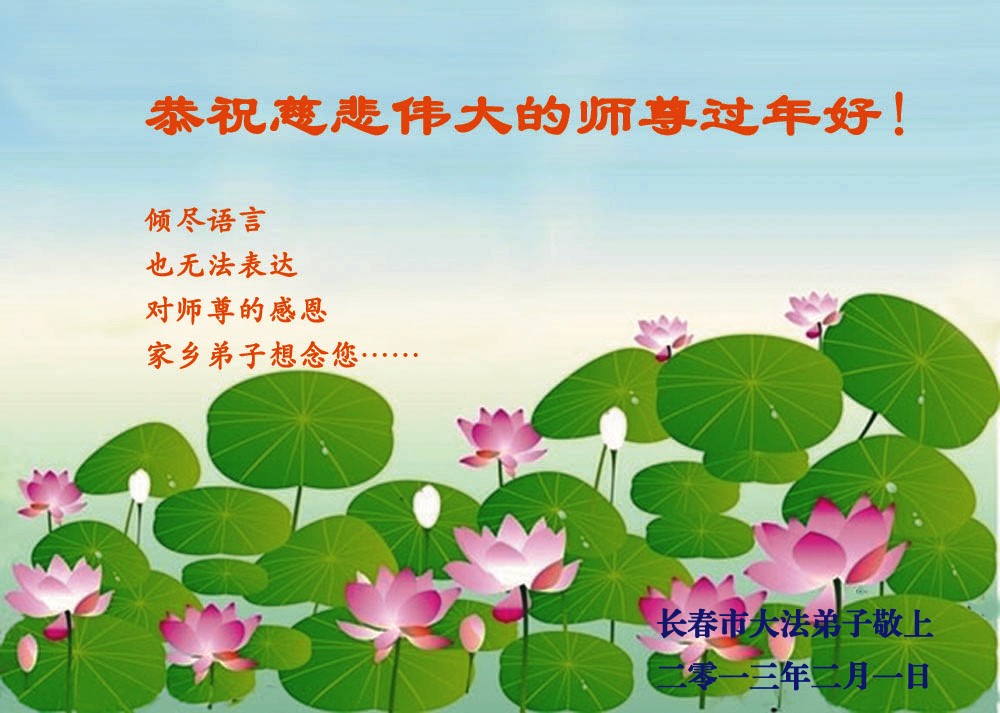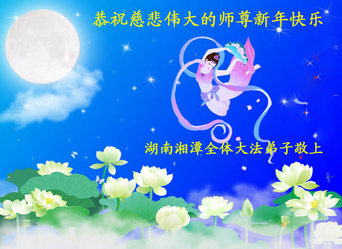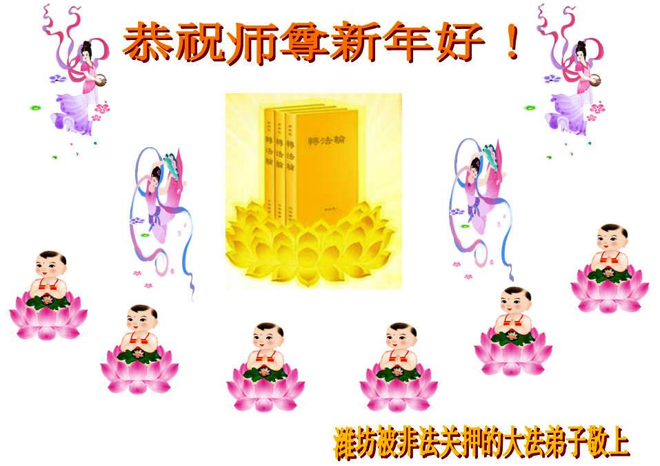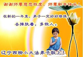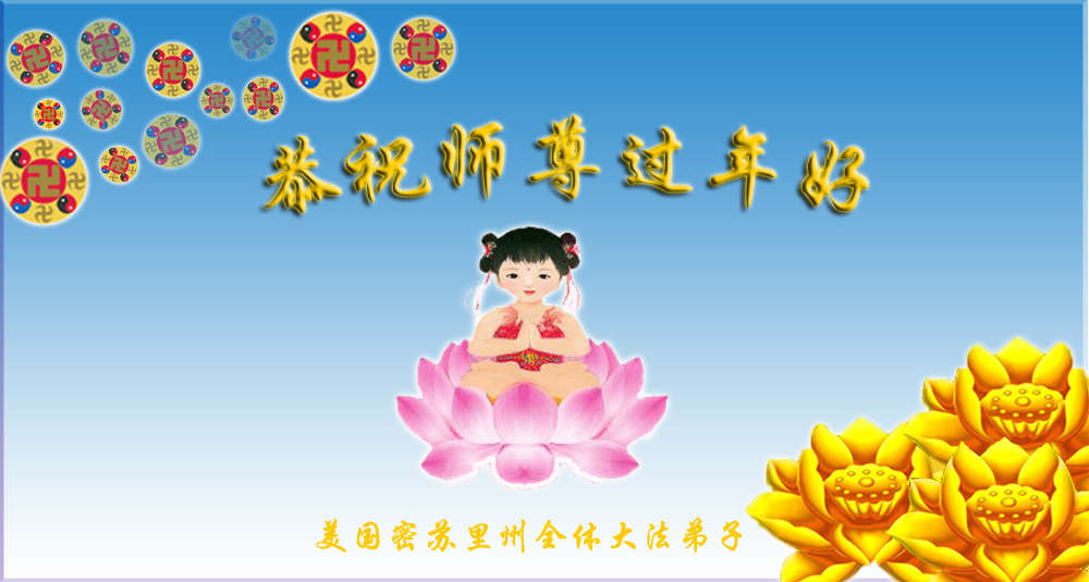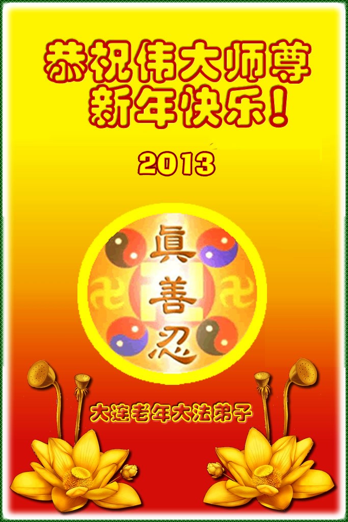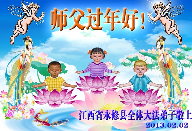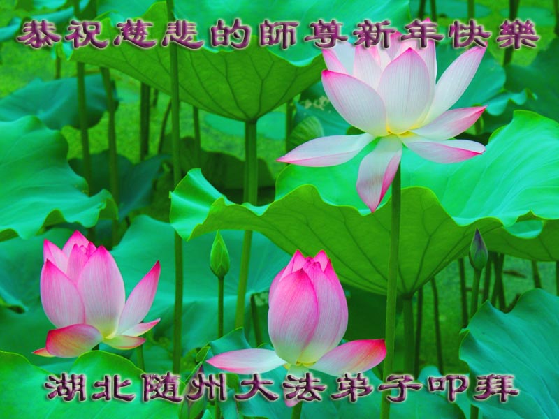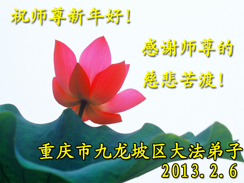 您为拯救众生、为您的弟子们修炼提高护航实在太辛苦了,您为人类带来了无限的光明和希望。看到您的弟子在中共高压迫害的14年里,他们一如既往,年复一年日复一日的做着讲清真相救人的大事,而且不求回报,无私付出,只有您这高德师父才会教出如此善良无私的徒弟。为表敬意,借新年佳节之际发个贺卡,祝您新年愉快,合家欢乐。