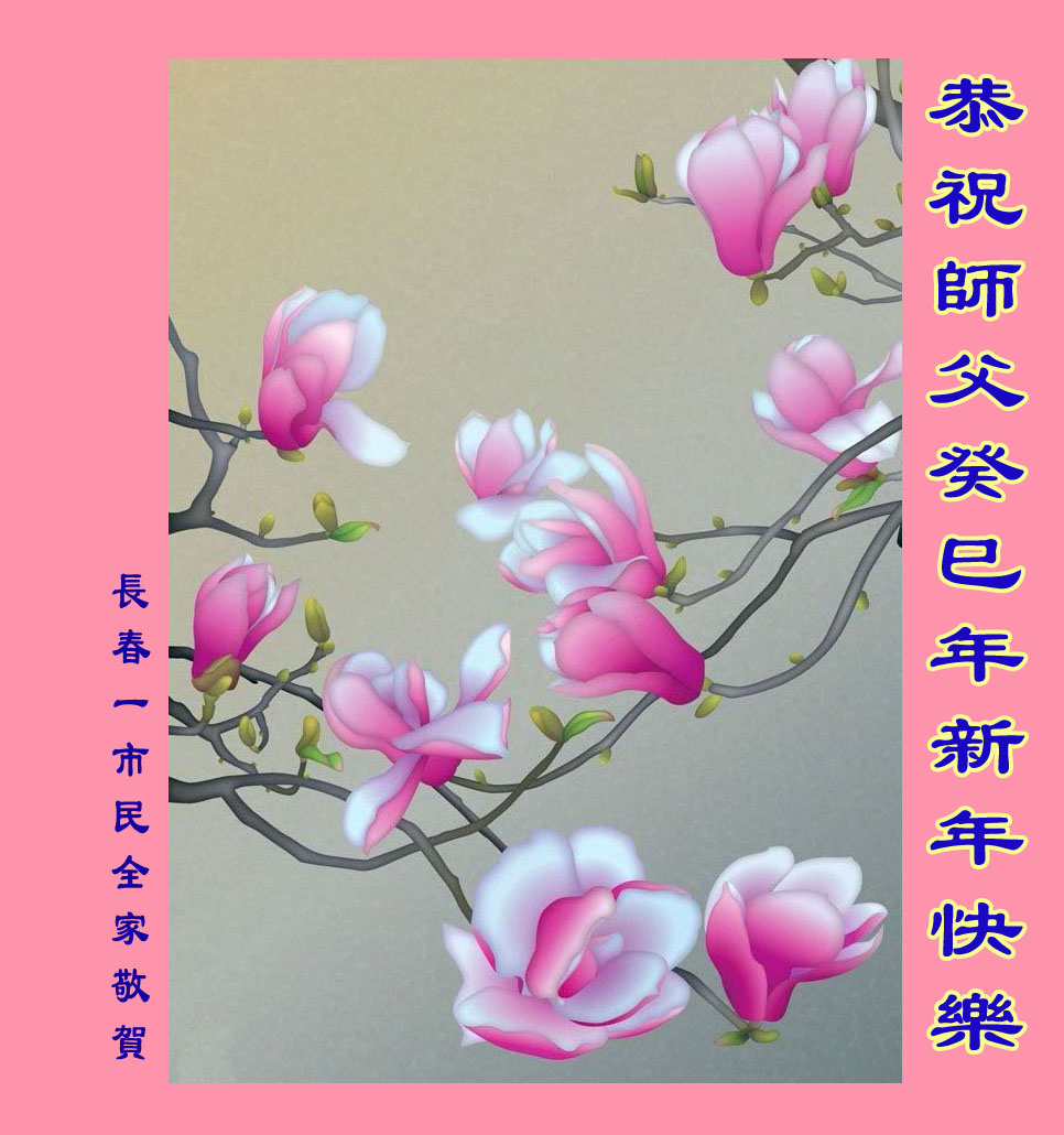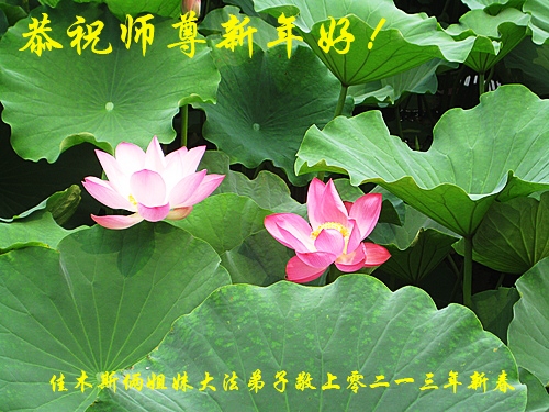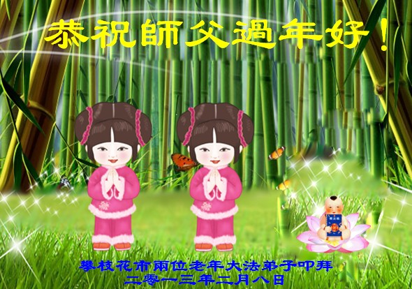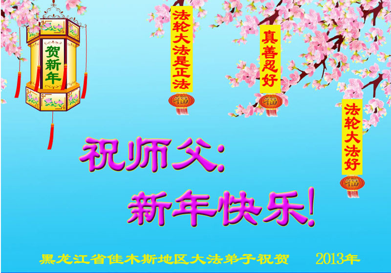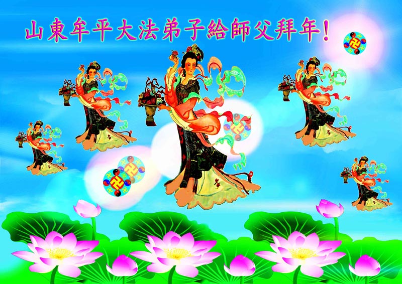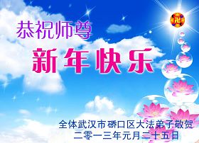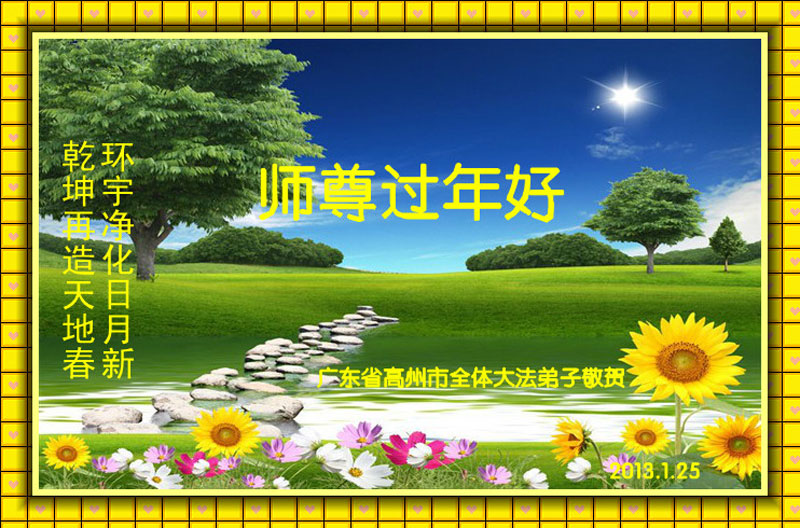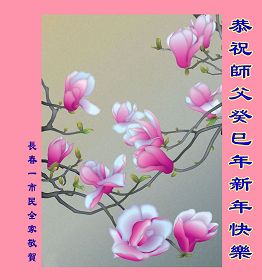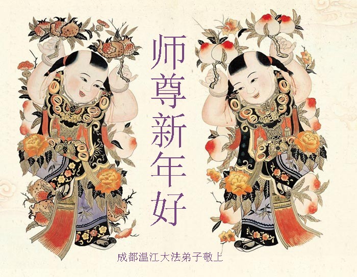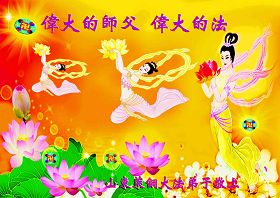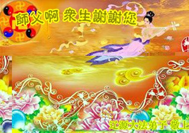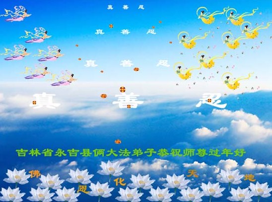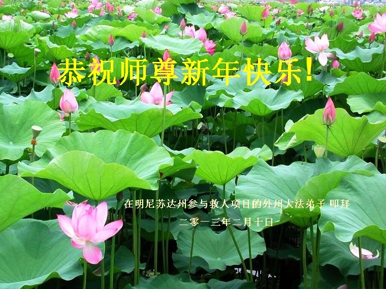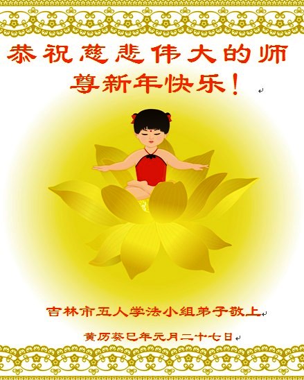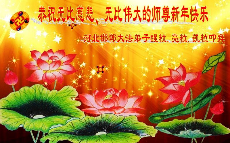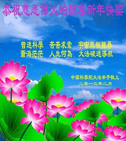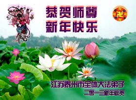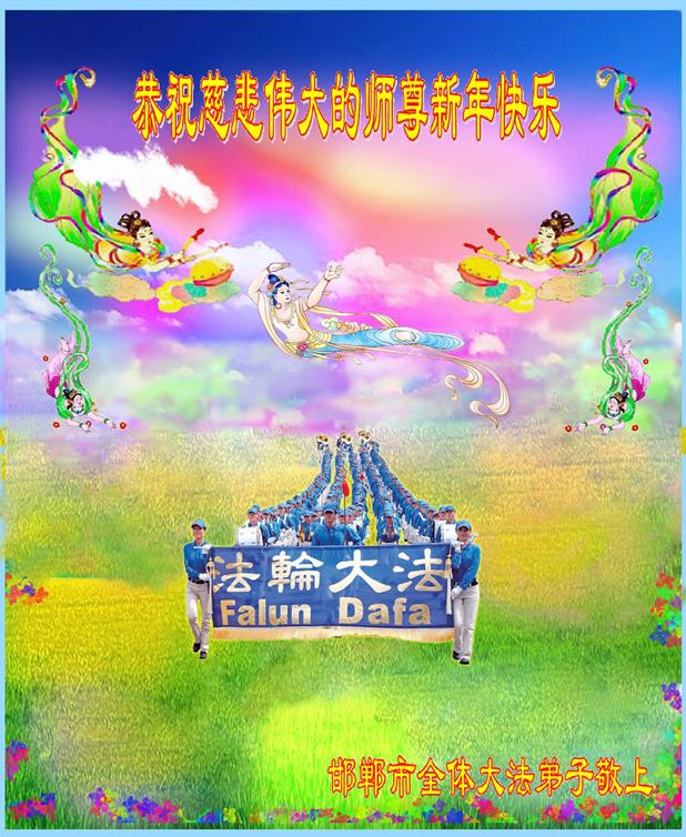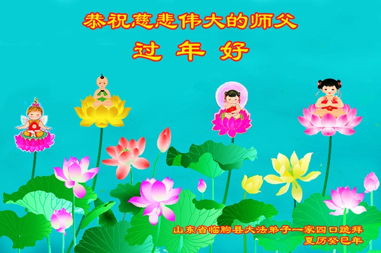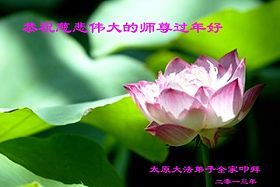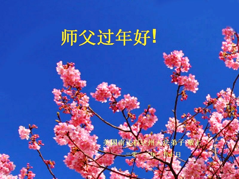 您为拯救众生、为您的弟子们修炼提高护航实在太辛苦了,您为人类带来了无限的光明和希望。看到您的弟子在中共高压迫害的14年里,他们一如既往,年复一年日复一日的做着讲清真相救人的大事,而且不求回报,无私付出,只有您这高德师父才会教出如此善良无私的徒弟。为表敬意,借新年佳节之际发个贺卡,祝您新年愉快,合家欢乐。