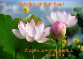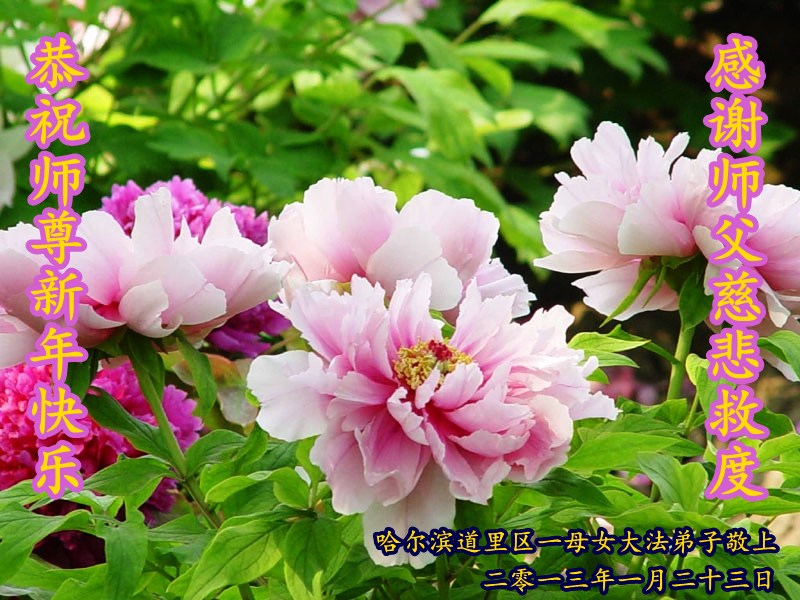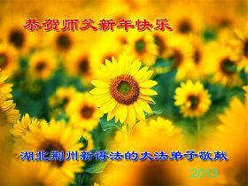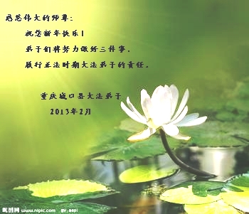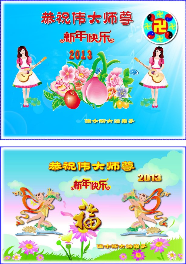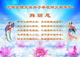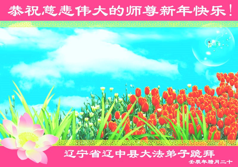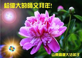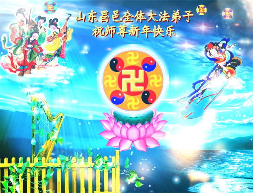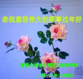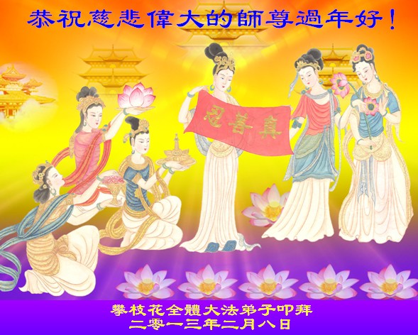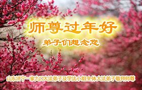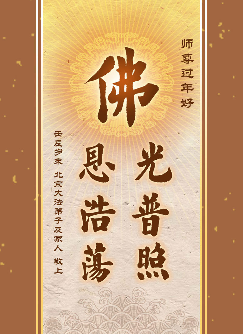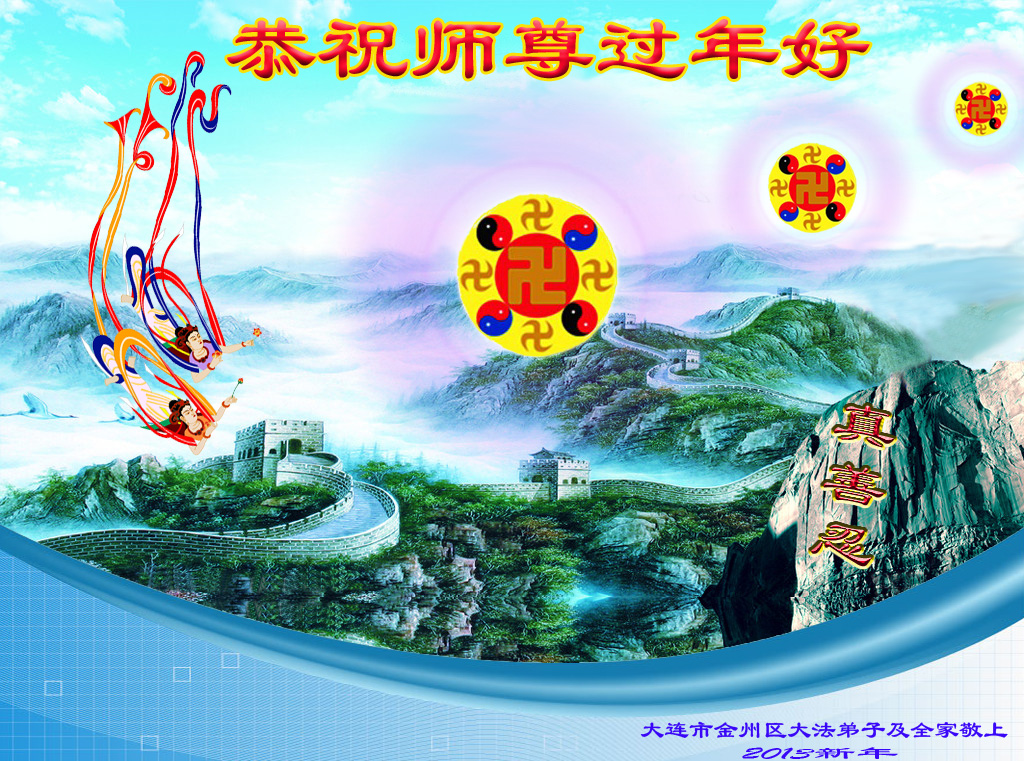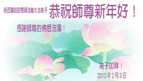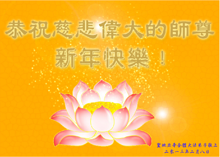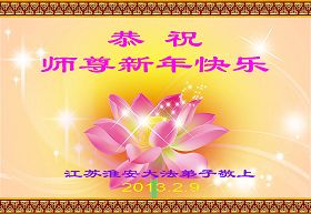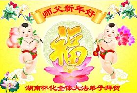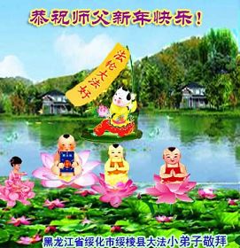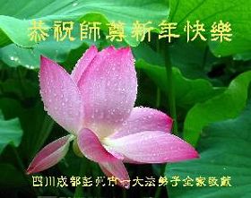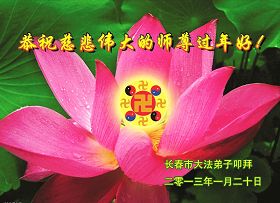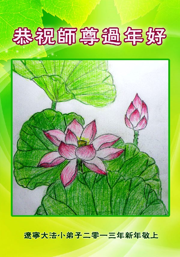 您为拯救众生、为您的弟子们修炼提高护航实在太辛苦了,您为人类带来了无限的光明和希望。看到您的弟子在中共高压迫害的14年里,他们一如既往,年复一年日复一日的做着讲清真相救人的大事,而且不求回报,无私付出,只有您这高德师父才会教出如此善良无私的徒弟。为表敬意,借新年佳节之际发个贺卡,祝您新年愉快,合家欢乐。