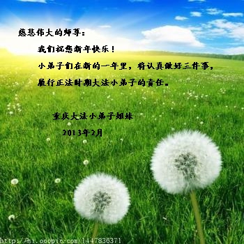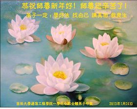在新的一年里,弟子们一定会学好法,放下一切常人心,做好三件事,精進修炼紧随师尊,走好最后助师正法的路。再次叩谢师恩。