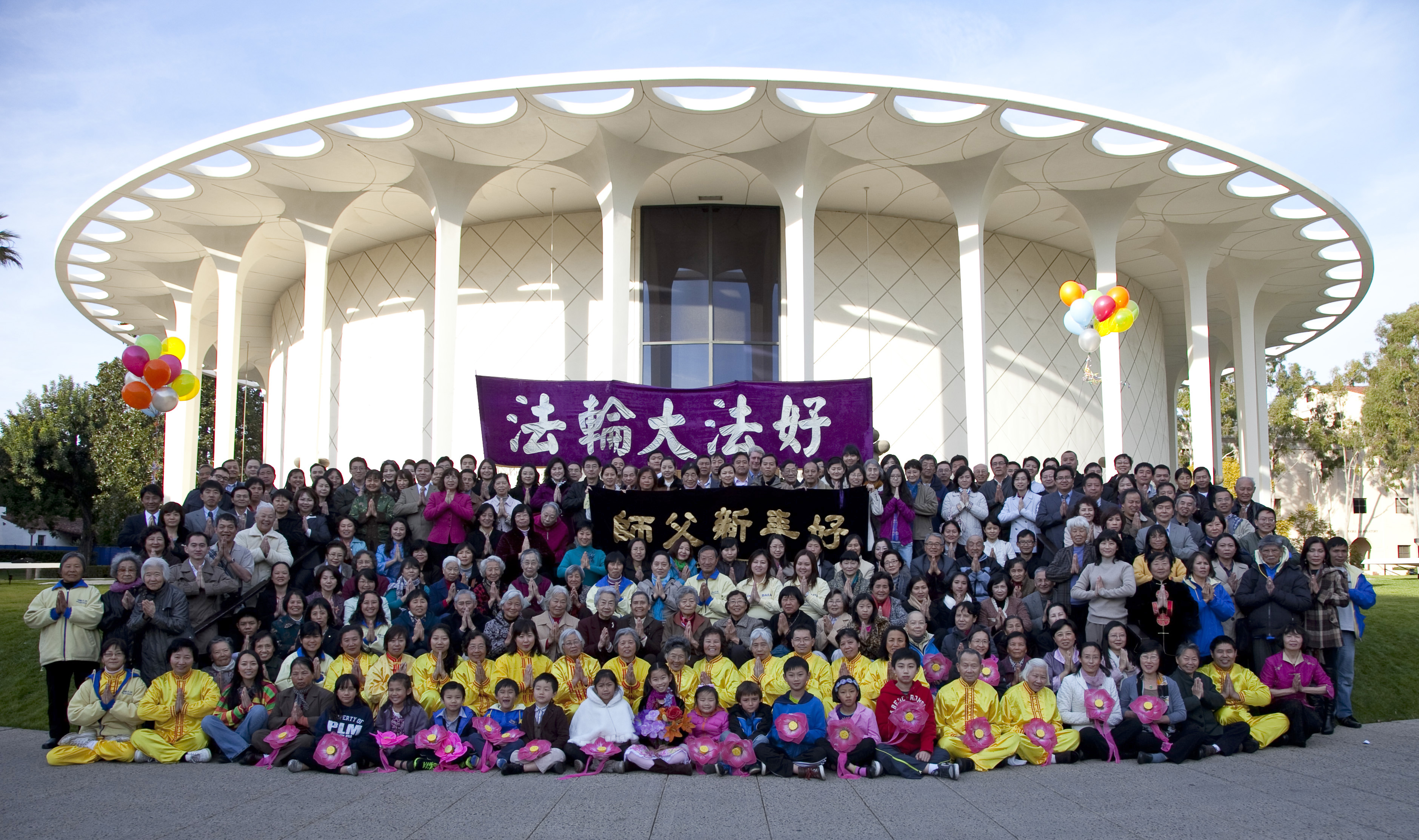 这里是1999年2月师尊第一次到洛杉矶讲法的地点。再次聚集在这里,弟子们回顾十几年来在师父呵护下走过的修炼及助师正法历程,无法用语言表达对师父的感恩,大家从心底发出呼唤:“师父新年好!”“法轮大法好!”