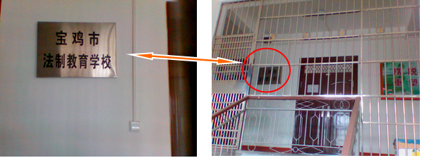 ![]() 三楼楼口整个都被不锈钢管封闭着,走廊墙上挂的对外牌子是“宝鸡市法制教育学校”,连周围的村民及做生意的都知道这里是关押法轮功学员的黑窝。 |