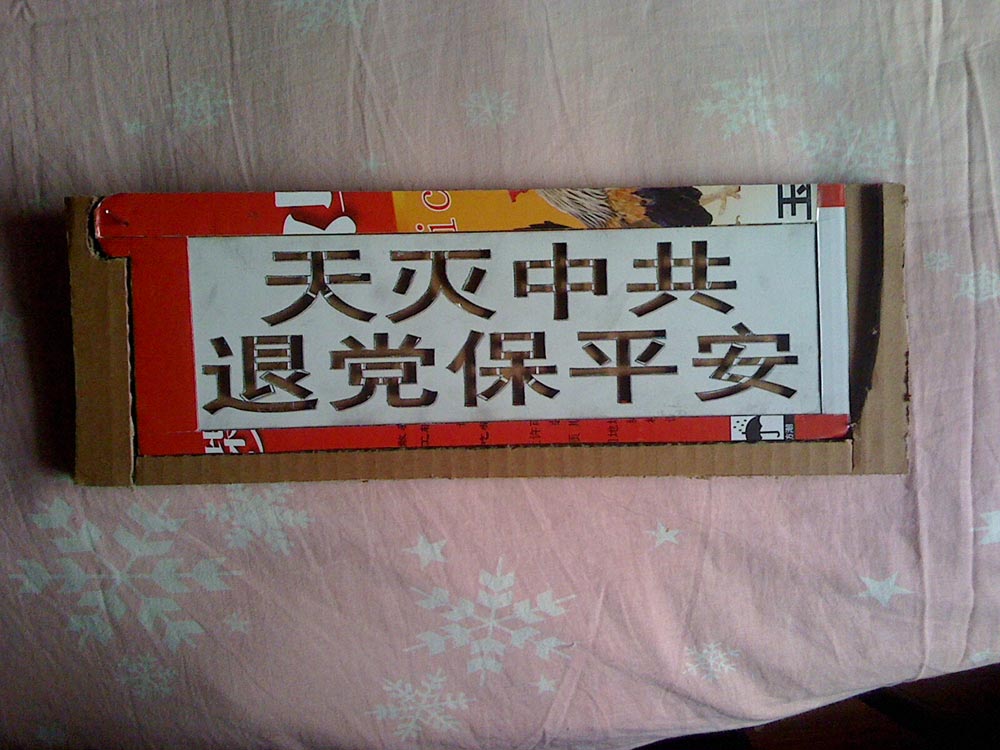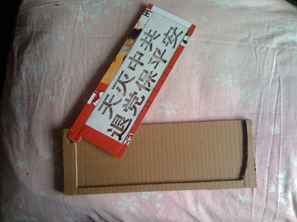 塑料“复写板”,文具店有售(30X40厘米,批发3元左右);壁纸刀;尺子;废纸箱板;双面胶;手喷漆(五金或化工商店有售8~10元)。手喷漆最好做一个套,这样拿着方便,别人也不知是什么东西,拿着不滑手。