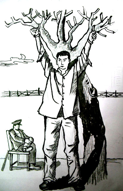 刘传武被垛庄司法所所长刘相雨等人单独紧闭在一闲屋处,白天铐在窗外晒,晚上单手铐在窗子上,脚尖刚刚着地,晚上蚊子嗡嗡的,在他身上落了黑黑的一身,咬的他钻心的疼。蒙阴公安局李姓局长等人用竹劈子抽打潘永凤丈夫的手背、全身,抽打的全身发了黑。
