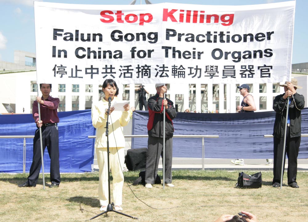 正在澳洲访问的前加拿大资深国会议员、人权活动家大卫•乔高(David Kilgour)与悉尼大学教授玛利亚•菲雅塔罗•辛(Maria Fiatarone Singh)在结束了国会大厦里和议员们的论坛会后赶到集会现场声援。同时,六名在中国遭受迫害的法轮功学员以亲身经历的绑架、非法监禁、酷刑和奴役劳动,证实了正在中国发生对法轮功学员的残酷迫害。