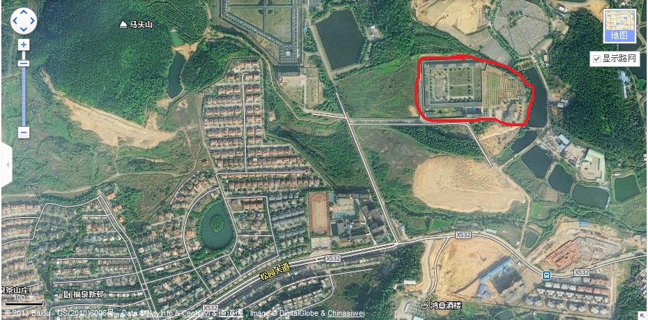 ![]() 红圈内为江门市看守所、戒毒所、拘役所的所在地。法轮功学员大多被关押此地。 | ![]() 红圈内为江门市政府所在地。610办公室设在其内。 |