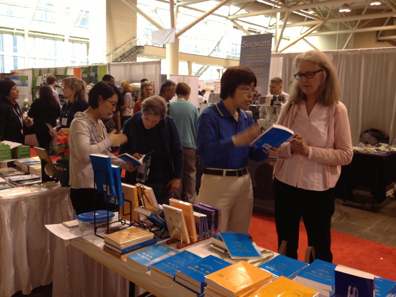一位白人老妇人在经过柜台的时候微笑的对法轮功学员说:“你们不用向我介绍了,我知道你们是谁,我从心里支持你们!”