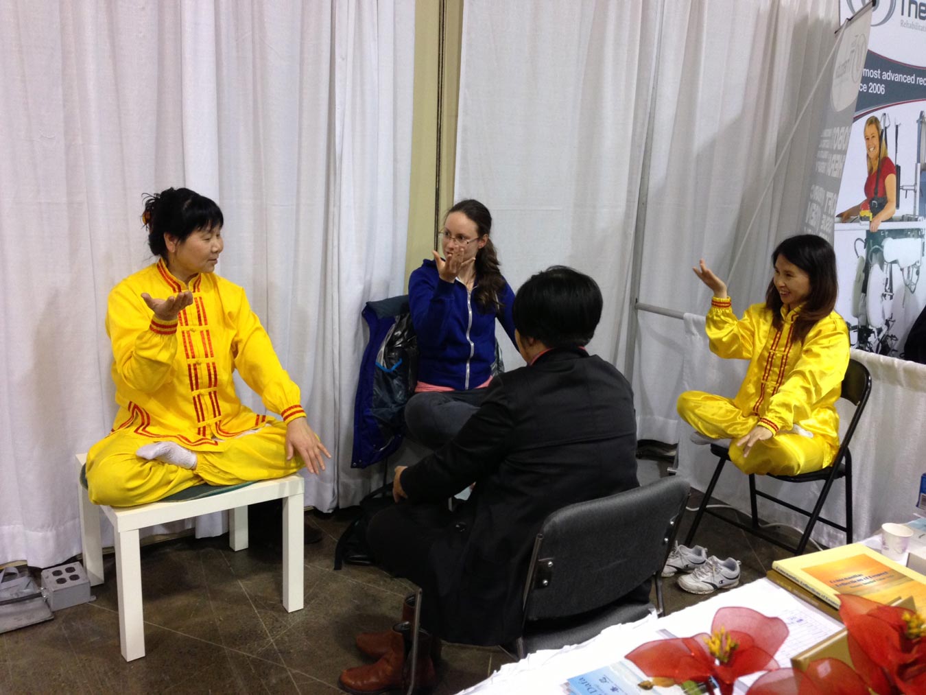 一位从中国大陆来的女士一直在寻找佛家的修炼方法,听完学员介绍后表示一定会去了解法轮功。