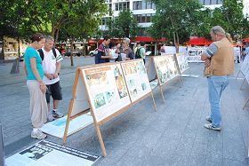 ![]() 民众观看法轮功真相展板并签名支持反迫害 |
