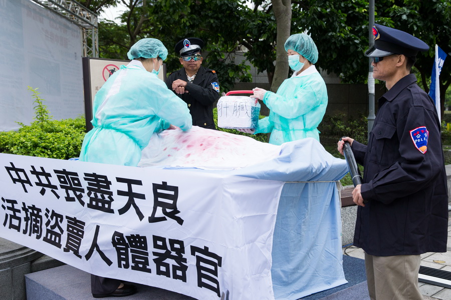 “制止中共迫害法轮功,暨纪念4.25和平上访十四周年活动”的场地“信义广场”,位于台北市热门景点一零一大楼的对面,游客络绎不绝,尤其是车水马龙的大型游览车,载来一拨拨的大陆观光客,很多人拿起相机、手机拍照。他们看到学员模拟“中共酷刑迫害的展示”,非常惊讶中国劳教所竟是这般迫害法轮功修炼者,学员告诉他们:“这‘老虎凳’和‘吊刑’只是模拟展示而已,真实比这更严重的酷刑,甚至活摘器官的罪行都还在中国境内不断发生着。”