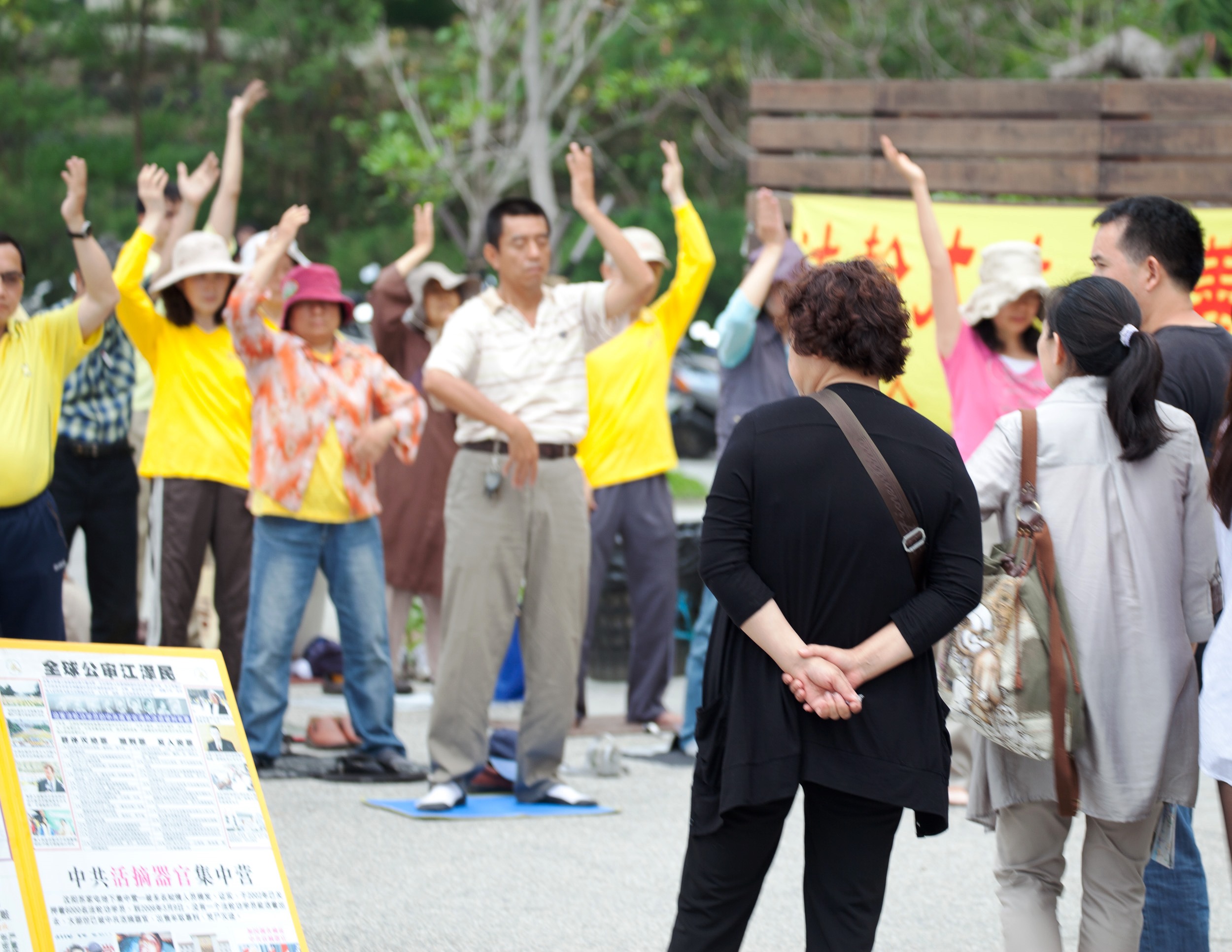 ![]() 法轮功学员,秉持着“四‧二五”精神,现场功法展示,陆客明显感受到法轮功平和修炼的环境。 |