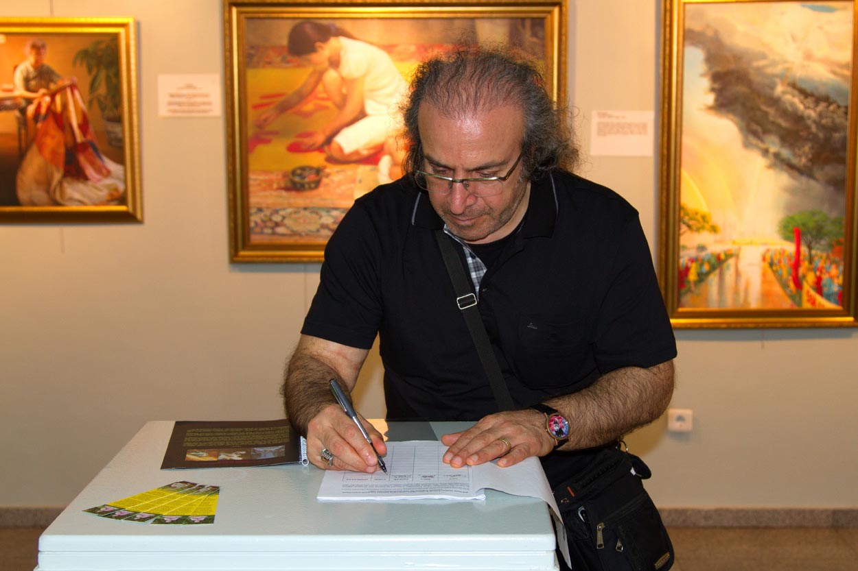 ![]() 歌剧表演艺术家、画家,曾多次举办过个人画展的Cemil zfrat先生,在呼吁制止中共活摘法轮功学员器官罪行的征签簿上签名后,对美展作品的艺术家们表示了极大的钦佩,同时,对精湛写实的作品赞不绝口 |