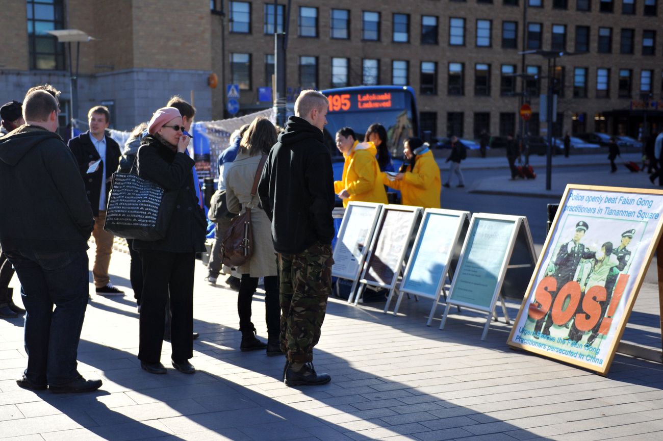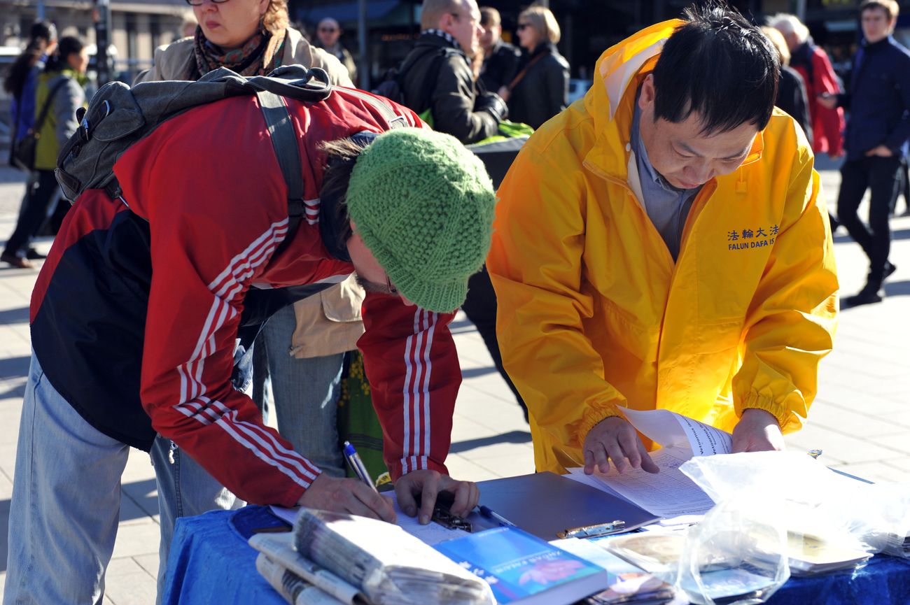 另外,有四位约二十岁的芬兰姑娘顿足于“法轮功”学员听学员讲真相过程,她们流下了同情的眼泪,她们马上说:“中共对法轮功学员‘活摘器官’的事太邪恶,不是人能干出的事,必须马上停止。”之后,她们乐意地排队签名以示支持。