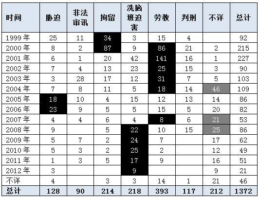 2000年,“劳教”成为主要迫害手段,然后一直持续到2007年。
