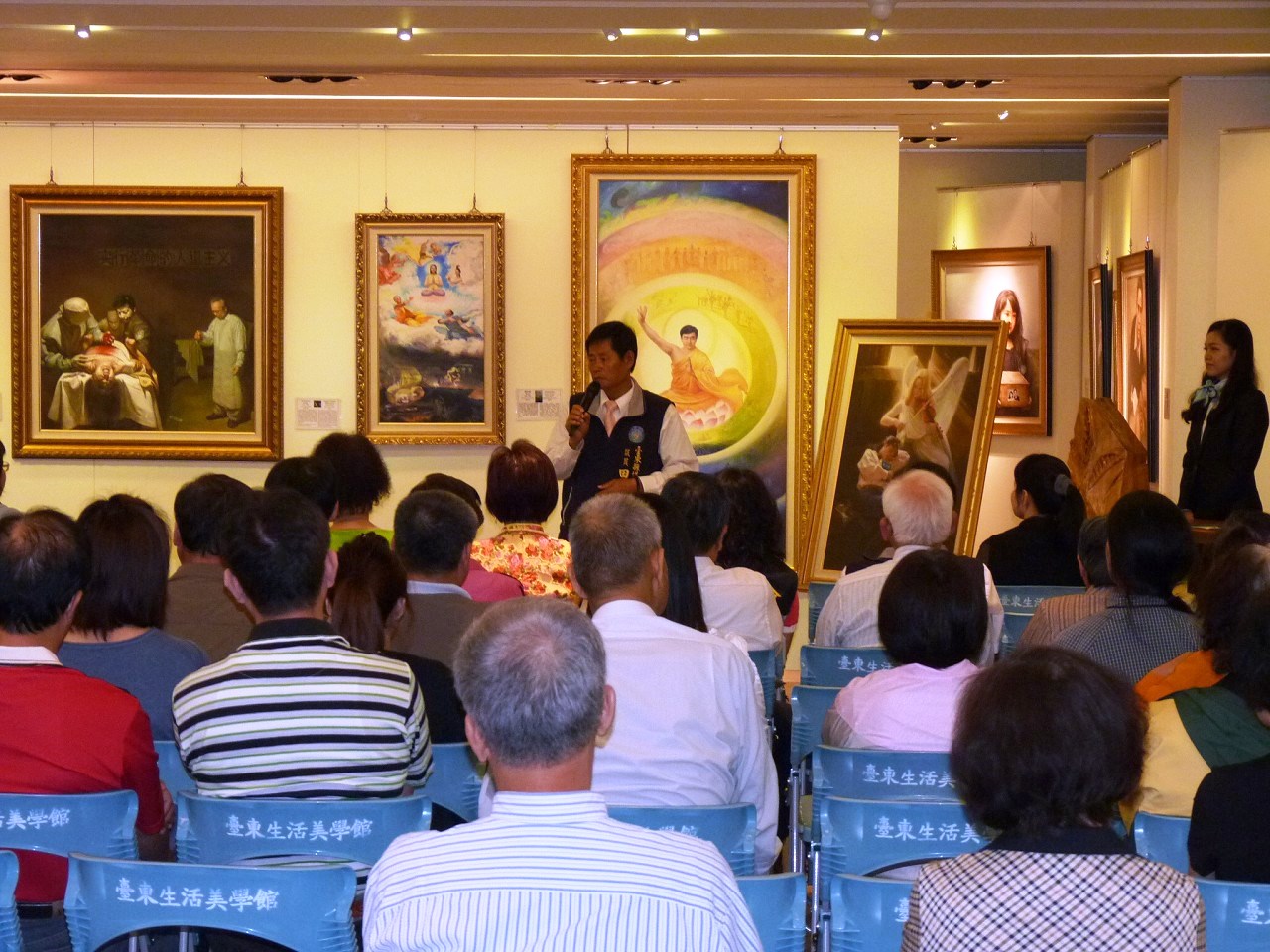 协办单位台东和美经典名店董事长、台东志工协会前理事长叶纯津也强调自己被画作的内涵深深震撼和感动。他看到作品中展现了修炼法轮大法的美好,展现了法轮功学员坚忍、宽容、祥和的内心世界,也深度揭露了中共残酷迫害法轮功的真相,揭示了“善恶有报”的真理。叶纯津认为透过展览可以对人生有所启发,并洗涤心灵,获得不一样的人生体悟,是非常有意义的美展。