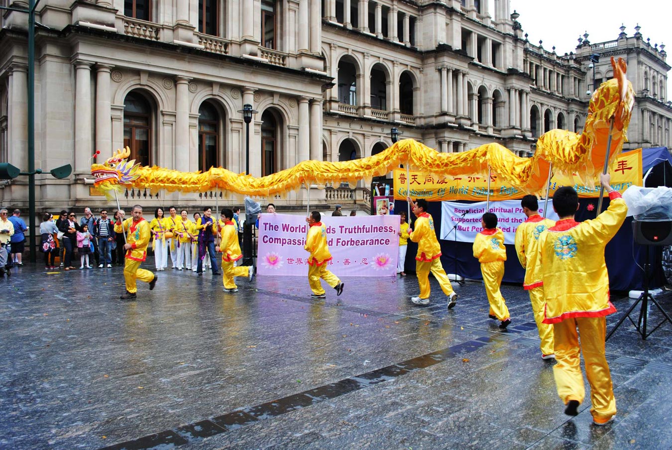 ![]() 法轮功学员在澳洲布里斯本广场(Brisbane Square)上展示功法 |