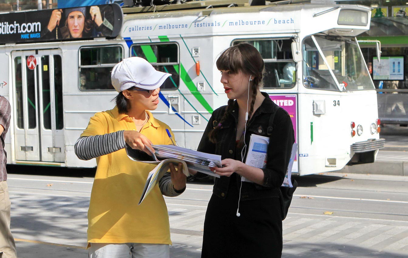 中午十二点,在墨尔本城市广场举行的盛大集会将当天的“世界法轮大法日”庆祝活动推向了高潮。色彩缤纷的气球、圣洁美好的莲花、格外醒目的《恭祝师尊华诞暨法轮大法弘传二十一周年》等诸多横幅,将城市广场装点得分外喜庆,充满了节日的气氛。广场聚集了各界民众,场面热烈、欢庆、祥和。