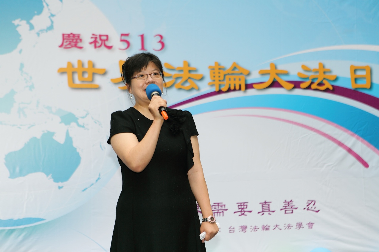 法轮大法还有五套功法,简单易学,适合所有年龄的人。学员一律义务教功,不收礼,不收费。在桃园有将近八十个炼功点,在学校或在公园每天清晨都看的到法轮功学员们炼功的身影。而在每个法轮功学员在这条修炼的路上,都有自己生动的修炼故事,不但身体得到净化,心灵上也获得升华,庆祝大会上邀请三位不同年龄层的学员和大家分享他们的修炼心得,以下是心得的摘要。