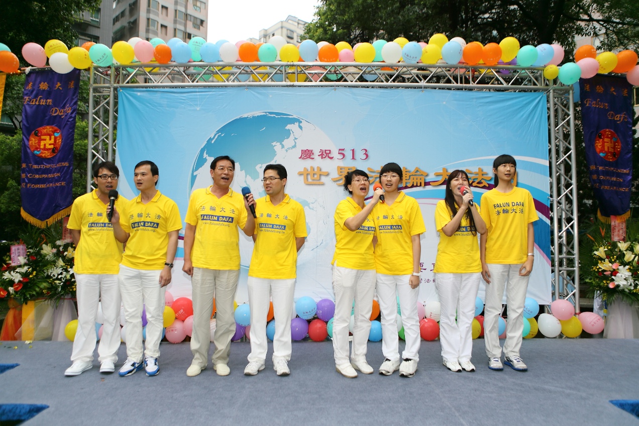 二零一三年五月十一日,台湾桃竹苗学员将近千人,在中坜热闹商圈旁的六和儿童公园举行庆祝大会,除了腰鼓队表演、诗歌朗诵、歌唱之外,还有多位政要莅临致词、学员分享修炼心得、集体炼功以及齐声恭祝“师父生日快乐”和合唱“法轮大法好”等活动。