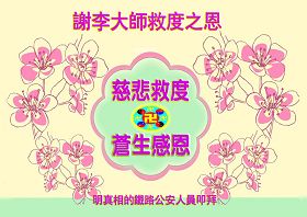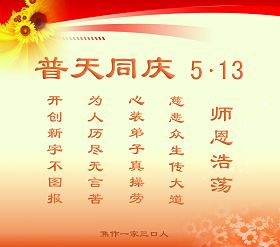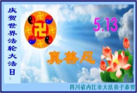 有缘看到这篇文章的读者,我想和你说:如果你能放下心底被中共强行压入的仇恨,抛开一切对法轮佛法的偏见,认真了解一下法轮功,得到的将是生命永恒的美好。那其实也是一个生命最大的真愿,不希望你错过。现在的灾难都是冲着中共来的,我希望每一个中国人都能选择三:退.,远离中共,保生命平安。遇到危险时,诚心的念“法轮大法好,真善忍好”。这也是每一个法轮功学员十四年来最真挚的心愿。