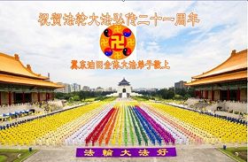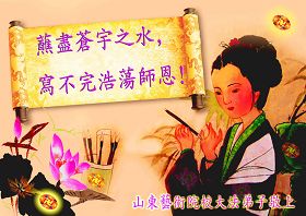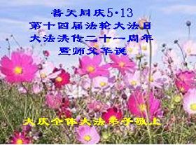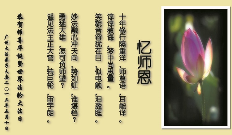 ![]() 此外,由王照明和郑雅励代表全体法轮大法学员以诗歌朗诵的方式,表达对师父感恩的心。 |