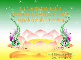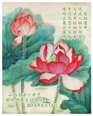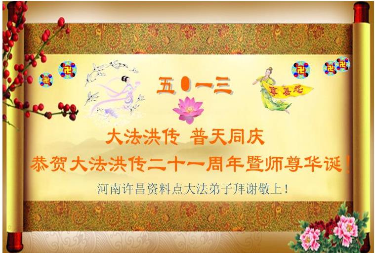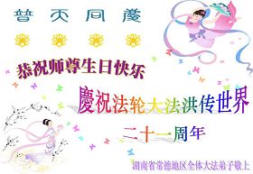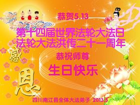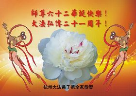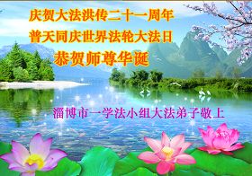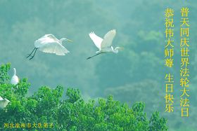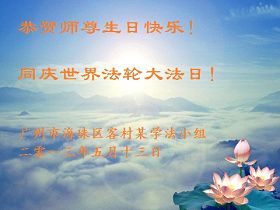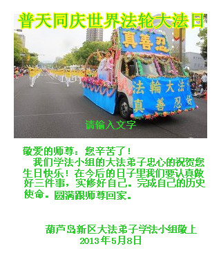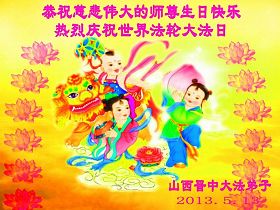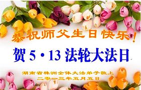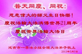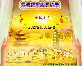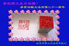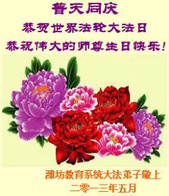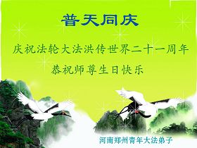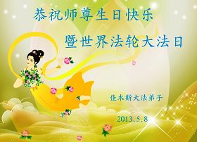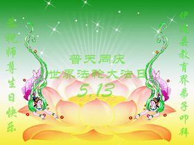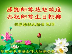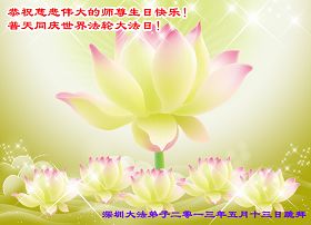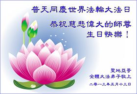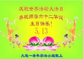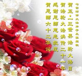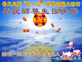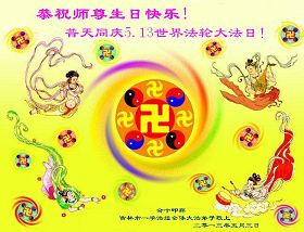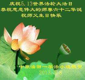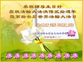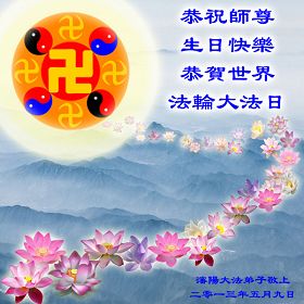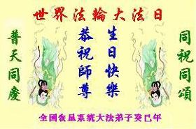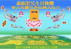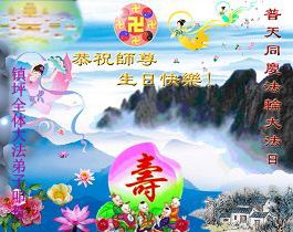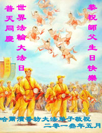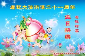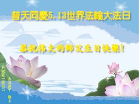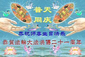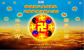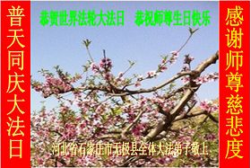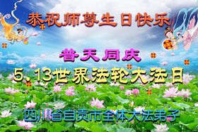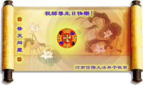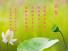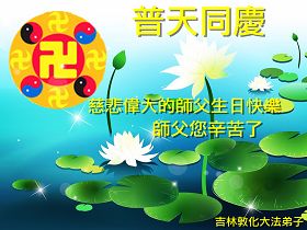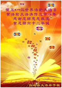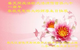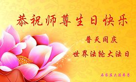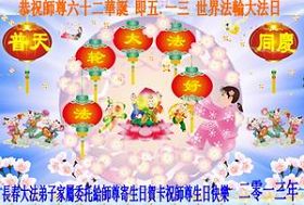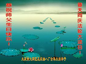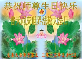 ![]() 埃德蒙顿法轮大法学员恭祝师尊华诞 |