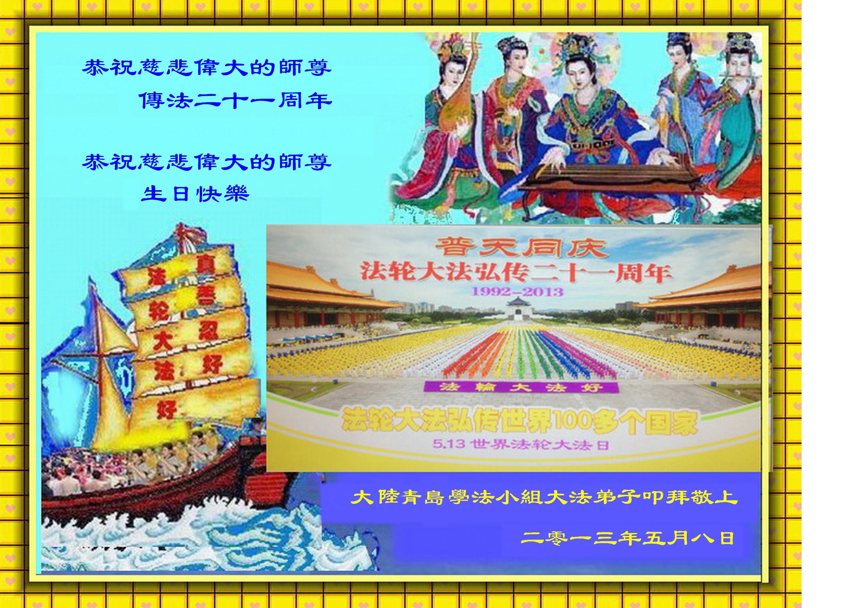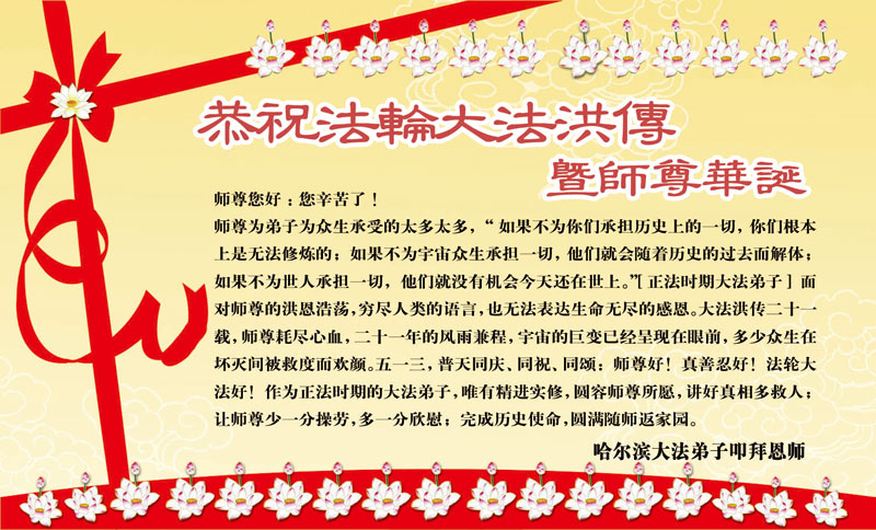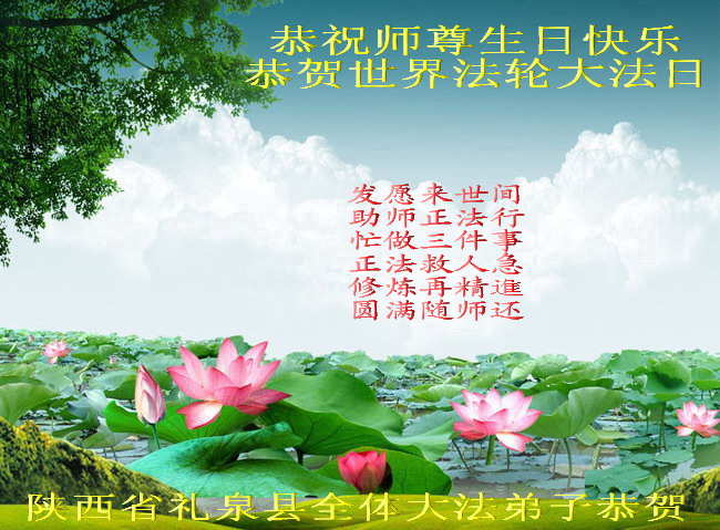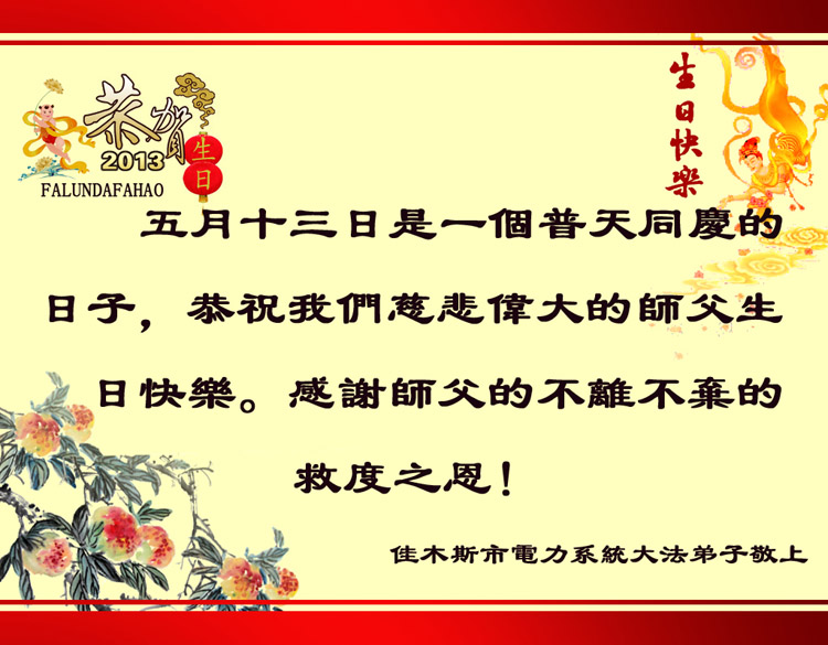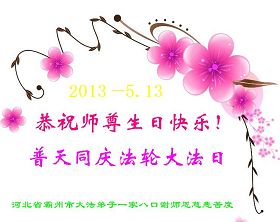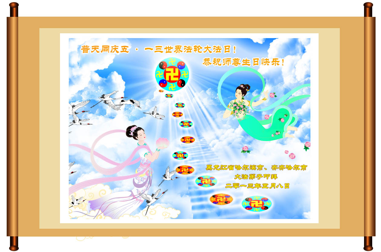 ![]() 埃德蒙顿法轮大法学员恭祝师尊华诞 |