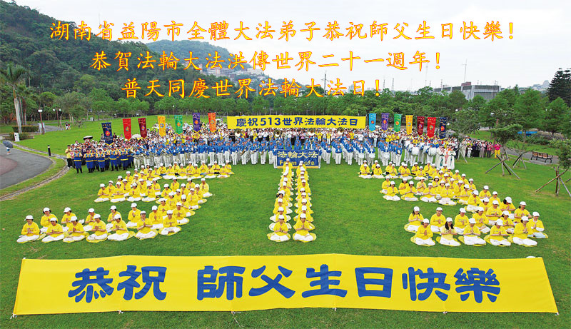 二零一三年五月十一日,台湾桃竹苗学员将近千人,在中坜热闹商圈旁的六和儿童公园举行庆祝大会,除了腰鼓队表演、诗歌朗诵、歌唱之外,还有多位政要莅临致词、学员分享修炼心得、集体炼功以及齐声恭祝“师父生日快乐”和合唱“法轮大法好”等活动。