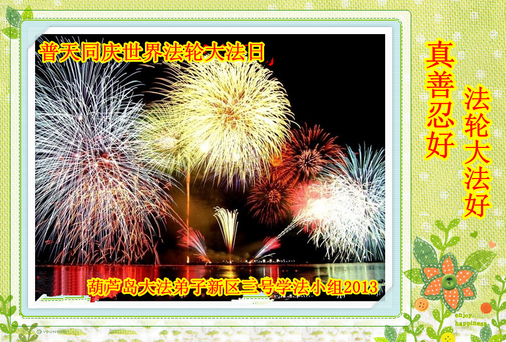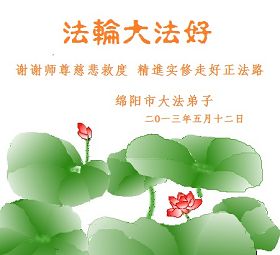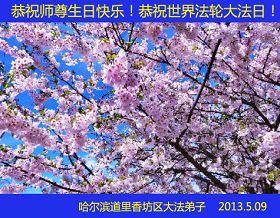 【明慧网二零一三年五月十三日】我是黑龙江呼玛县韩家园林业局大法弟子,名叫邵丽华,今年46岁。是96年7月有缘得法的。通过学法炼功修心性,使我明白了很多做人的道理,知道了人在世上的真正目的是“返本归真”。随着不断学法身体的变化很大,走路一身轻,我修炼前,虽然没有什么大毛病,可小病不断,经常头疼而且还轰轰响,耳鸣,神经衰弱等,在不知不觉中都好了。