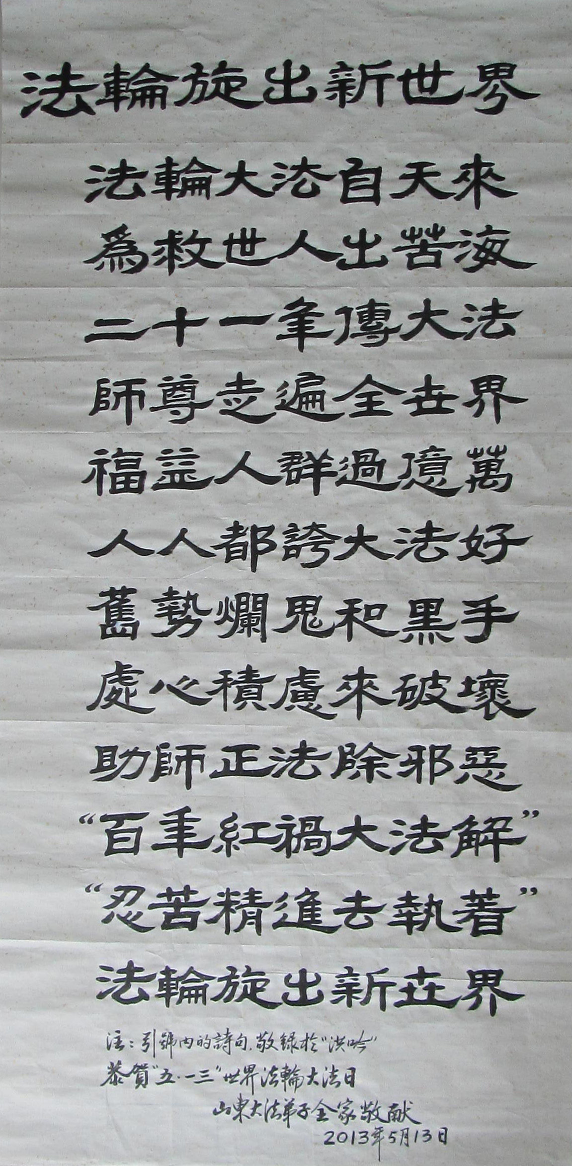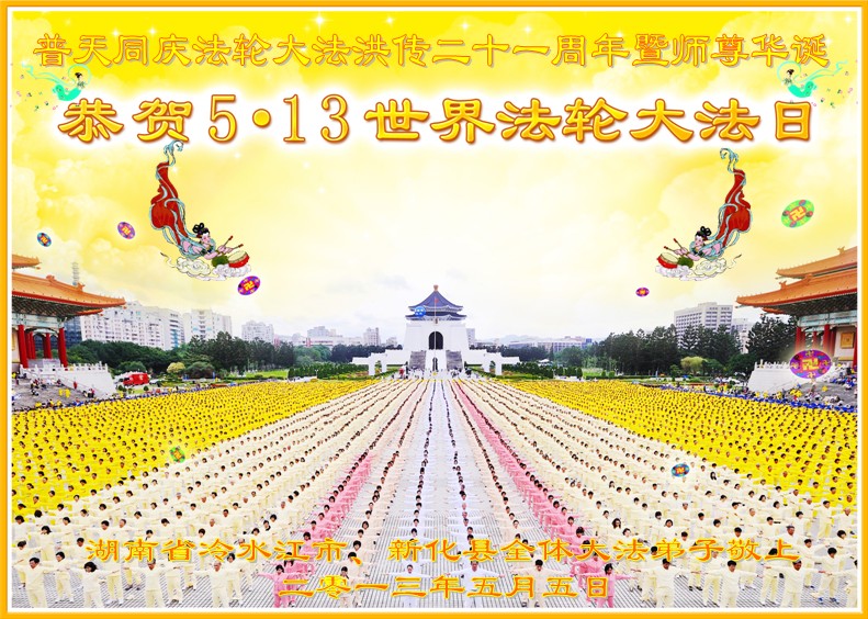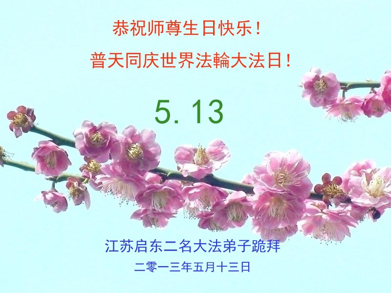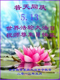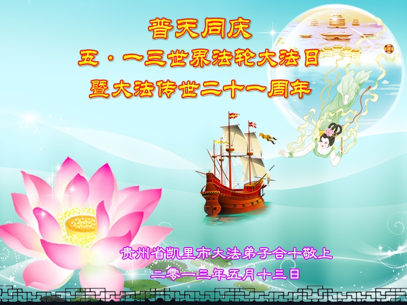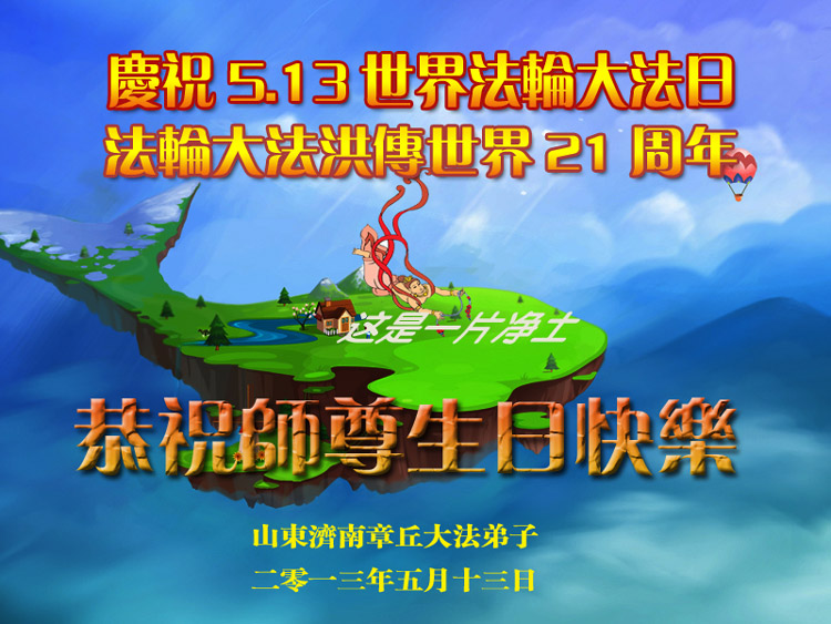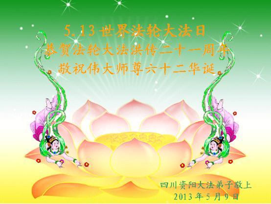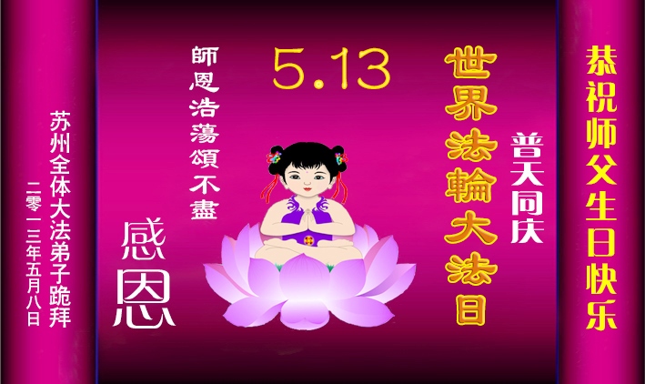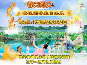 【明慧网二零一三年五月十三日】(明慧记者黄宇生台湾中坜采访报导)在世界各地的法轮功学员的心中,每年的五月十三日是值得感恩的日子,因为法轮功是一九九二年五月十三日在长春首次传出,而五月十三日亦是李洪志老师的生日。因此,二零零零年起,这一天被定为“世界法轮大法日”。每年的五月十三日,各地学员都会以不同的活动形式来表达他们内心对师父由衷的感恩,也借此向来往的人们传递大法的美好。