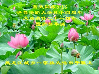 以上是我被迫害的真实经历。我希望参与迫害的人,能悬崖勒马,不要跟着恶党走了,善待大法善待大法弟子,就会天赐幸福平安。