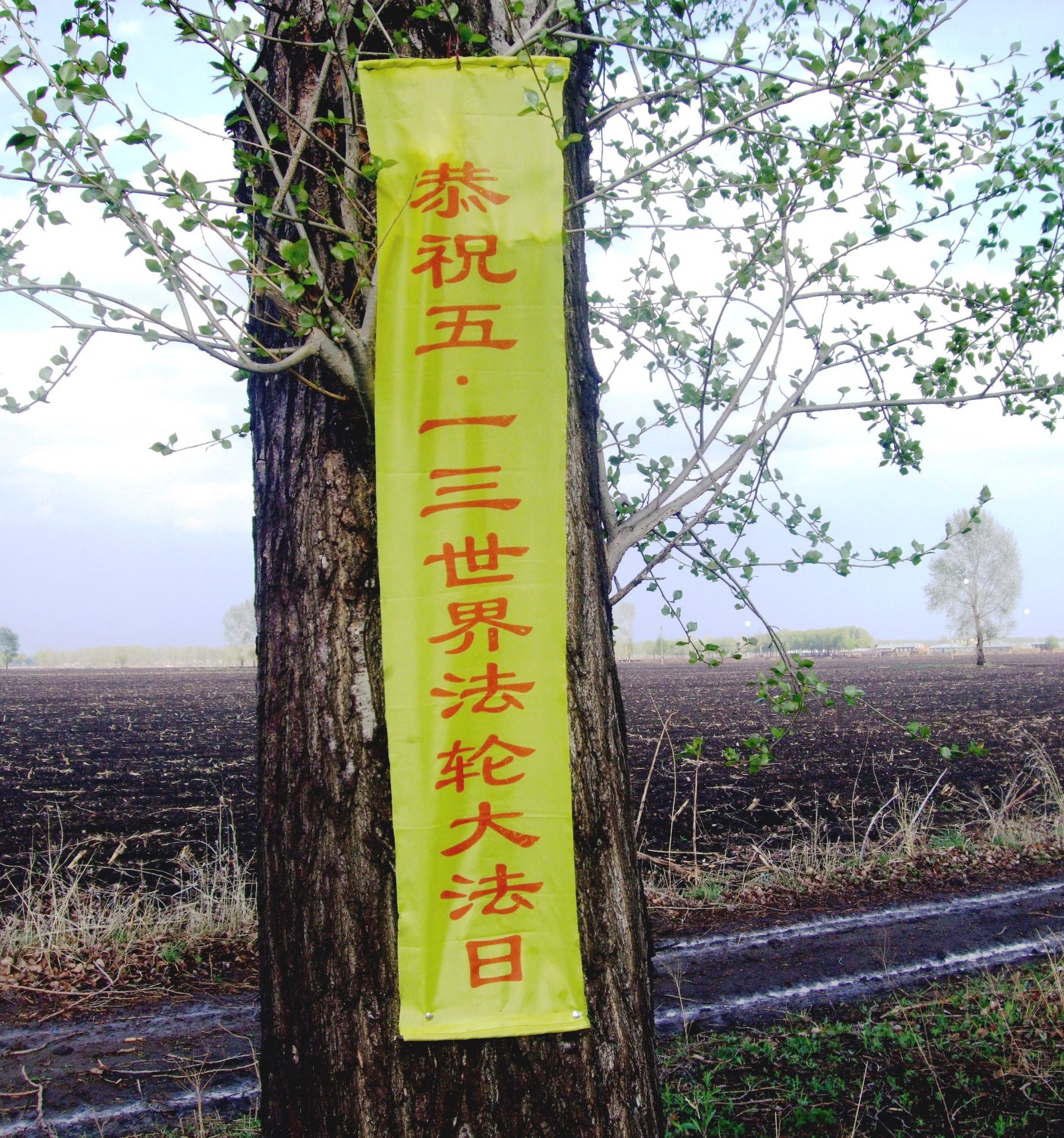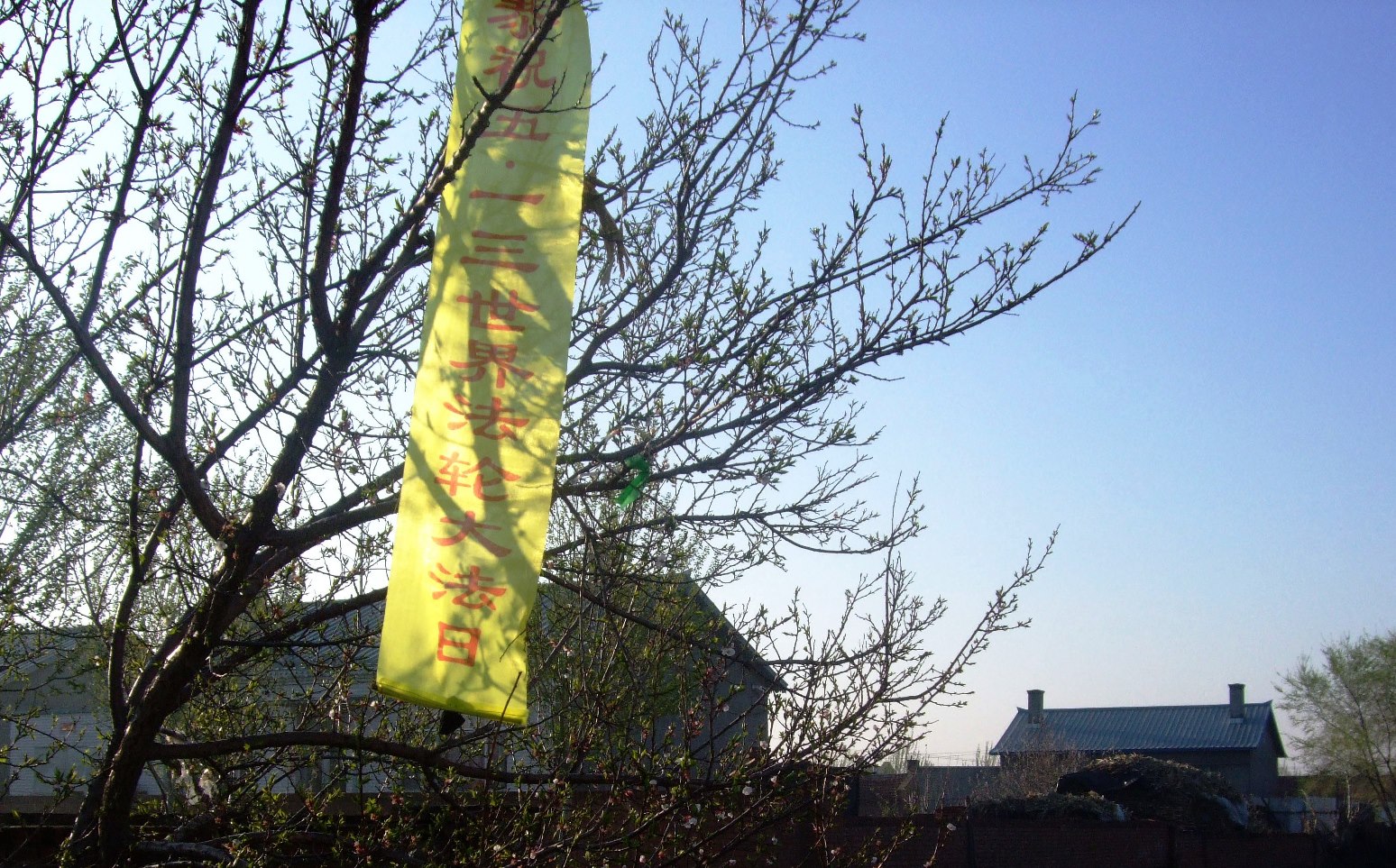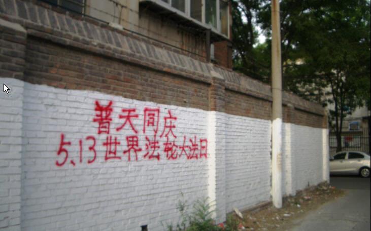 东北某乡镇5.13世界法轮大法日期间出现了恭祝法轮大法日等条幅