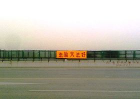 庆祝世界法轮大法日,河北某市在公路上出现真相条幅