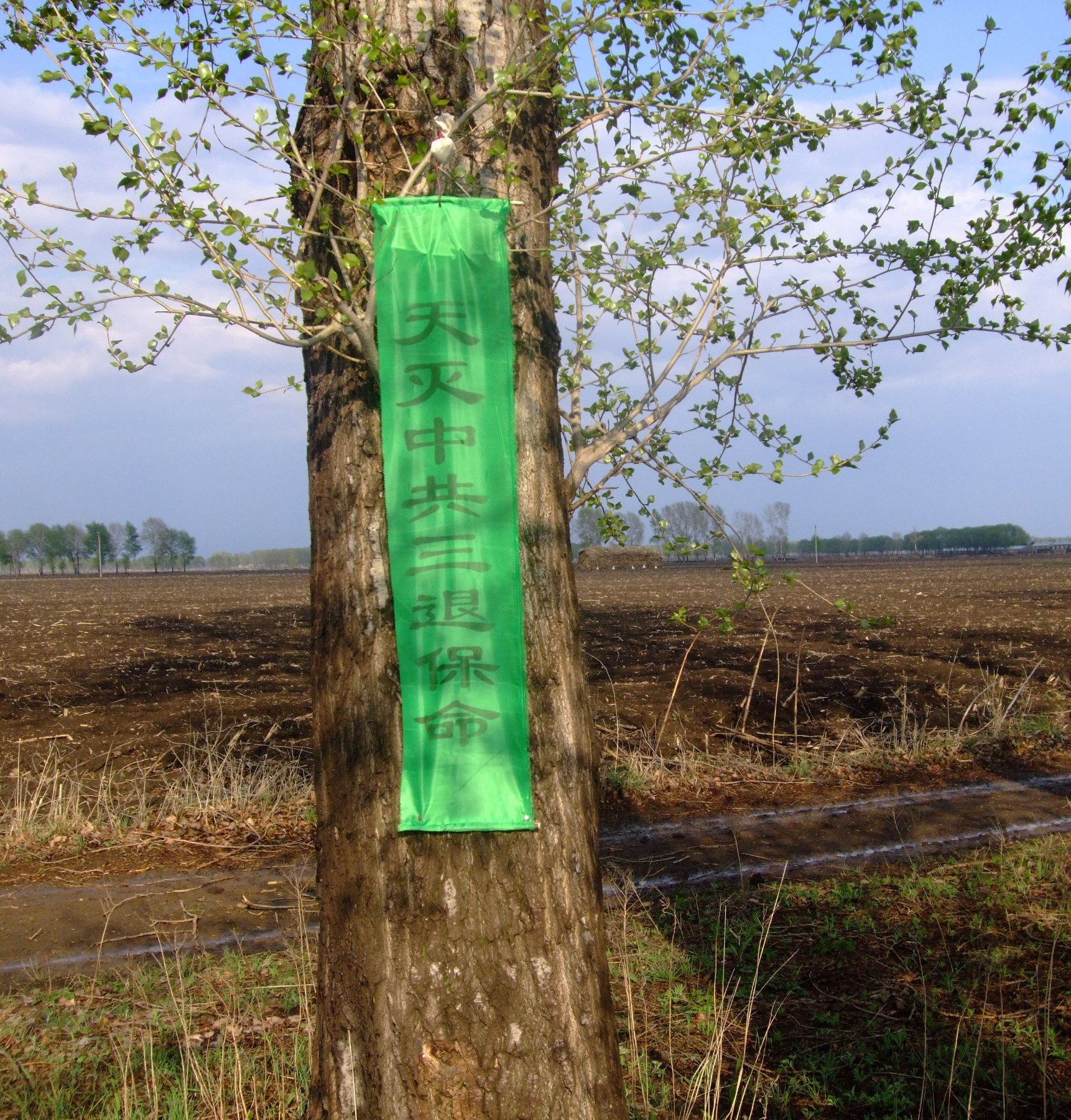 五月十二日晚,河北省某地大法弟子在各村道路旁和公路边张贴的法轮大法真相
